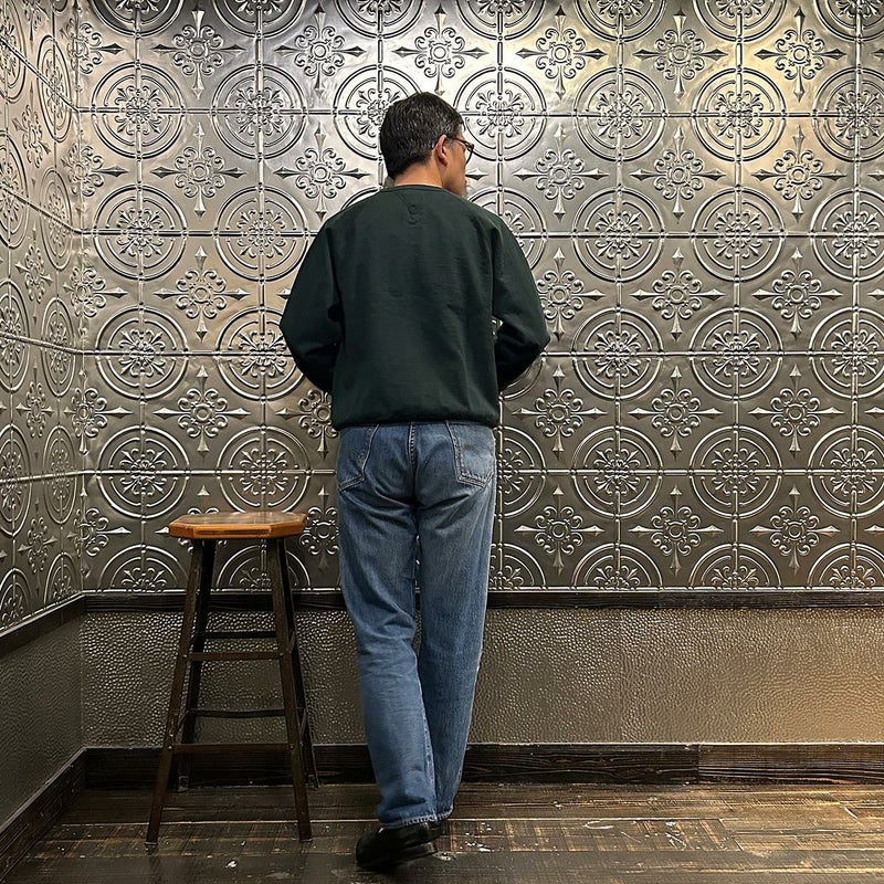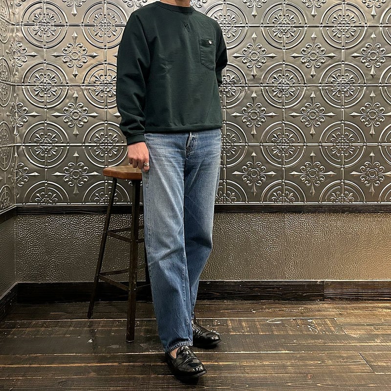 16オンス インレイ ラグラン 両V クルーネック 日本製