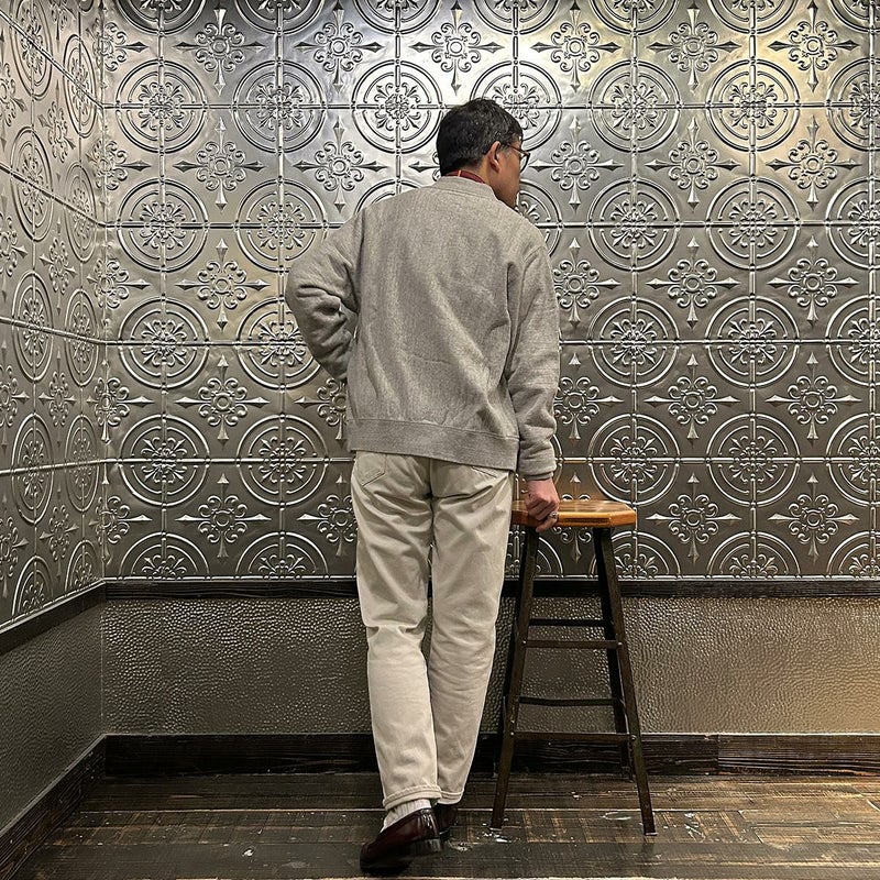 5. FELCO (フェルコ) CLASSIC FIT INVERSE WEAVE ZIP BASEBALL NECK SLASH POCKET 16oz HEAVY WEIGHT TERRY - TWISTED GREY