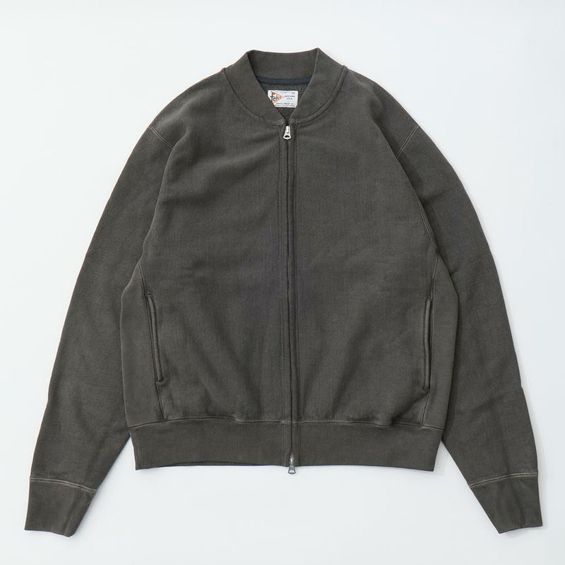 FELCO(フェルコ)のCLASSIC FIT INVERSE WEAVE ZIP BASEBALL NECK SLASH POCKET 16oz HEAVY WEIGHT TERRY。程よい厚みとコシのある16オンスのヘビーウェイトのフレンチテリー(裏起毛していないスウェット生地)素材のジップフロントのベースボールカラージャケット。生地を横向きに使用することで縦縮みを軽減し、サイドリブが横縮み防止と動きやすさを実現したインバースウィーブ仕様。。腰部分の左右にスラッシュポケットを装備。袖と裾のリブは長めのヴィンテージスウェット仕様。全体的にゆとりを持たせたクラシックフィット。