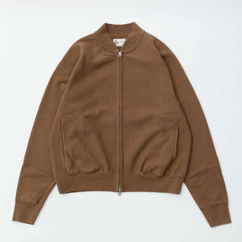 5. FELCO (フェルコ) CLASSIC FIT INVERSE WEAVE ZIP BASEBALL NECK SLASH POCKET 16oz HEAVY WEIGHT TERRY - BW BROWN
