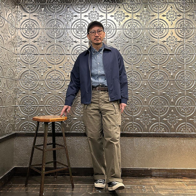 FELCO(フェルコ)のGROUND KEEPER JACKET。コットンポプリンを使用したショート丈のジャケット。アメリカのボールパークでグラウンド整備員(グラウンドキーパー)が着用していたジャケットがデザインソース。台襟なしですっきりとした襟周り。ジップフロントでコンマージップを使用。左右の腰上にハンドポケット。春から秋まで3シーズン活躍してくれる1着。