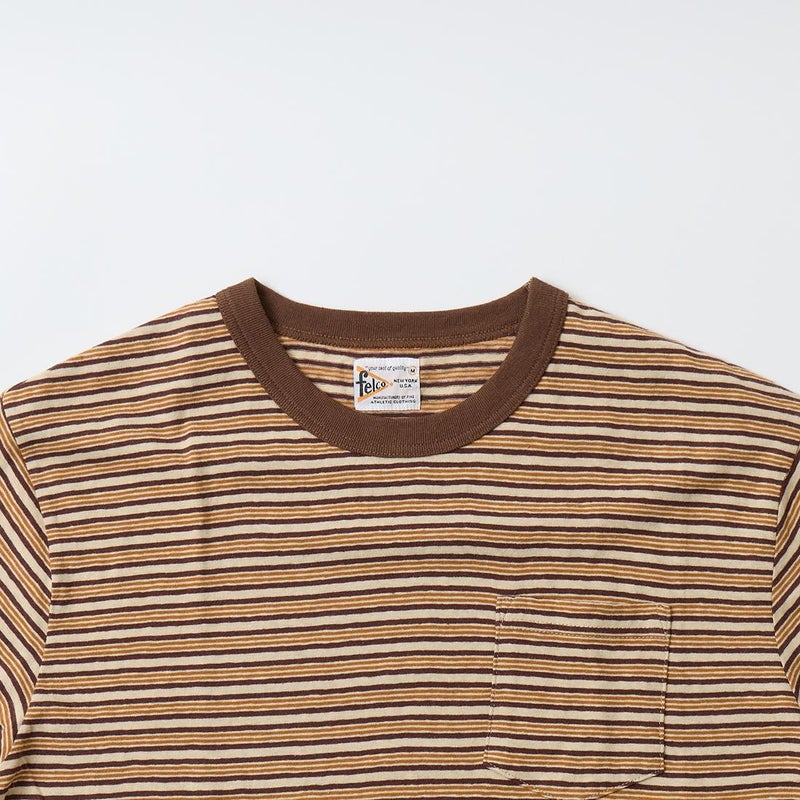 FELCO (フェルコ) S/S CREW POCKET TEE OLD PAPER STRIPE - 160 BROWN_BEIGE&ORANGE