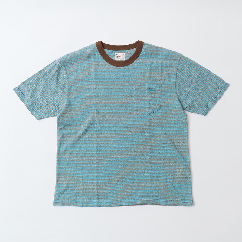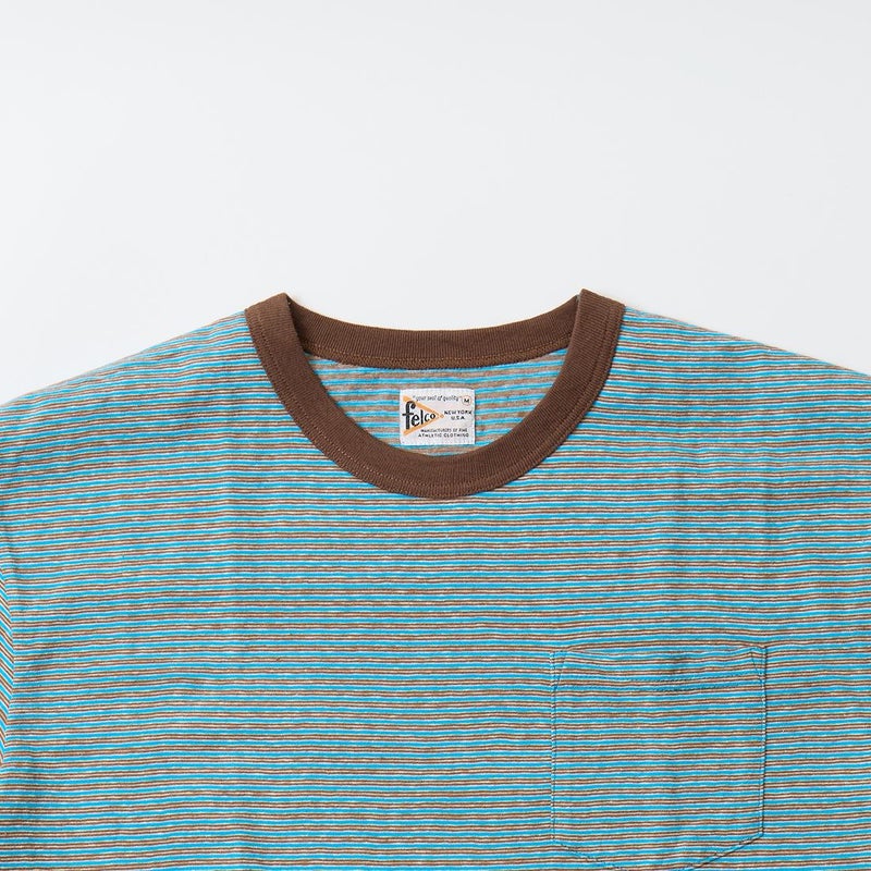 FELCO (フェルコ) S/S CREW POCKET TEE KAMOI STRIPE - 144 TURQUOISE_BROWN