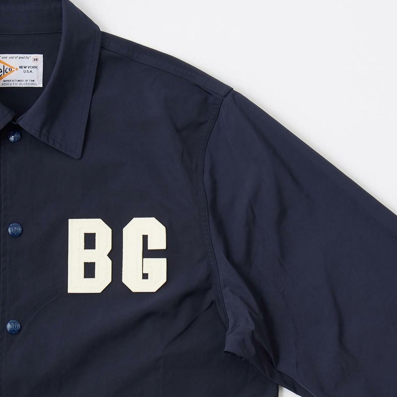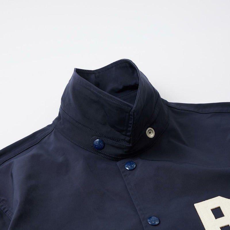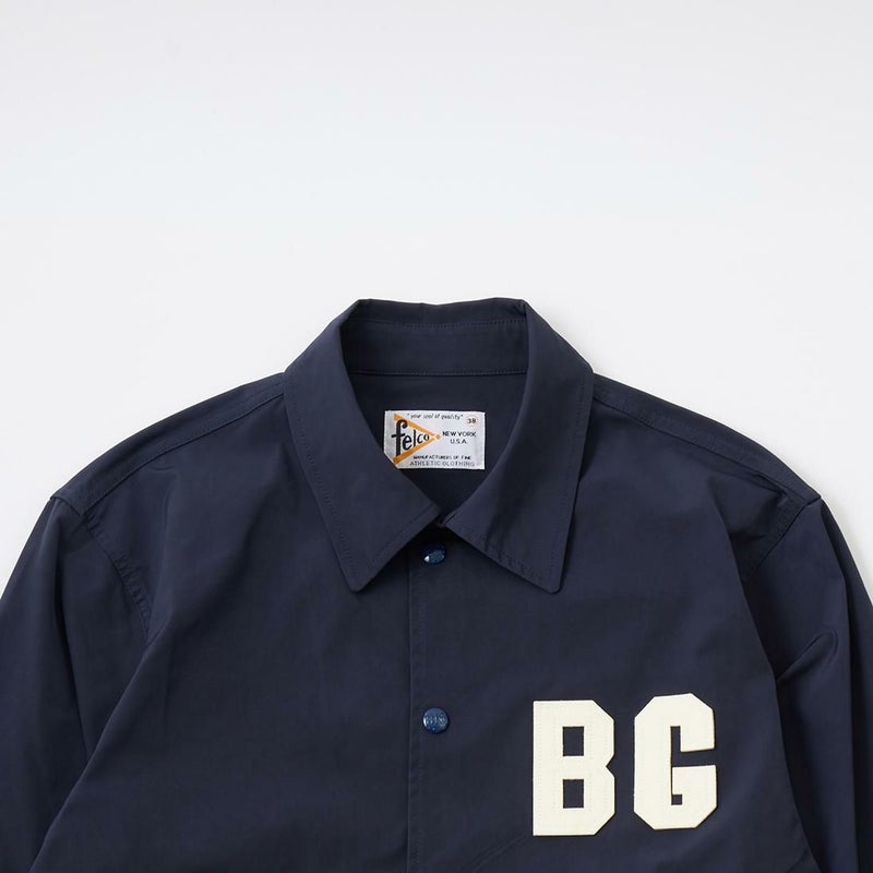 FELCO(フェルコ)のCLASSIC FIT SET IN SLEEVE UNLINED COACH JACKET SNAP BUTTON FRONT BROOKLIN ROYAL GIANTS 。ナイロンを使用したスナップフロントのコーチジャケット。襟は大きめで風防のチンストラップを装備。ポケットはフロントに2つ。背面右側にはデザインとしてもポイントになるポケットを配置。袖口はスナップでサイズ調整が可能なゴム仕様。全体的にゆとりを持たせたクラシックフィット。こちらはブルックリンロイヤルジャイアンツのワッペンが採用されたモデル。左裾にニグロリーグのオフィシャルタグも付いています。