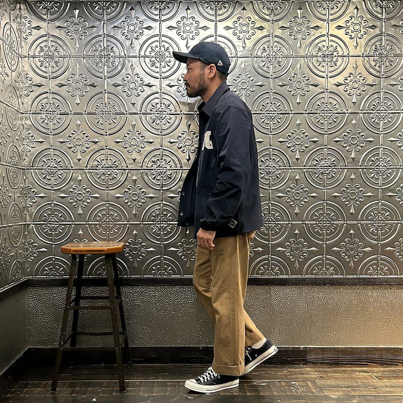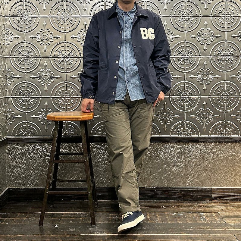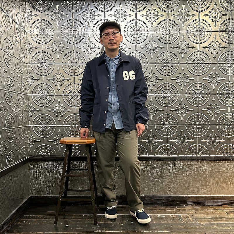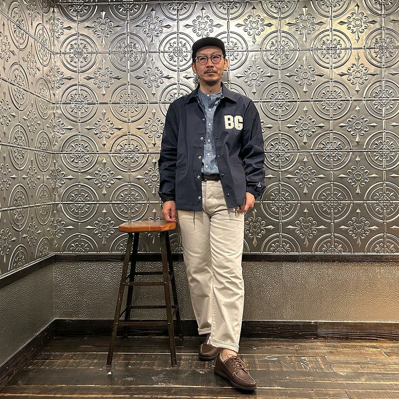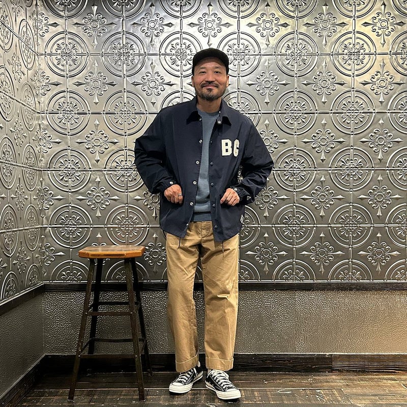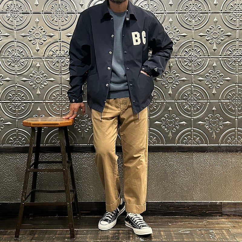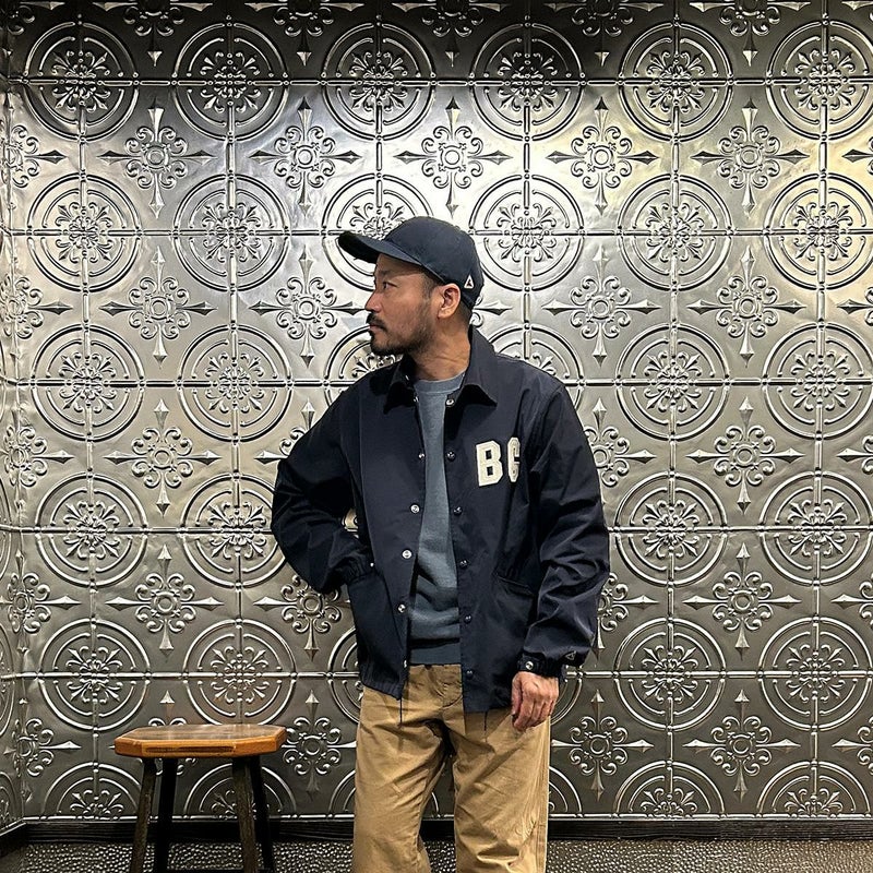170センチ68キロの体型で「38」サイズで丁度良い着用感です。以前のフィットとは違いゆったりとしたつくりのクラシックフィット仕様。インナーに地厚めのパーカーやスウェットを着てもゆったりとしたサイズ感で着れますよ。また裏地のない1枚仕立てとあって着方次第では長いシーズン楽しめる1着。今シーズン一押しの二グロリーグシリーズのコーチジャケット。スポーツスタイル好きな方にはオススメしたいアイテムです。