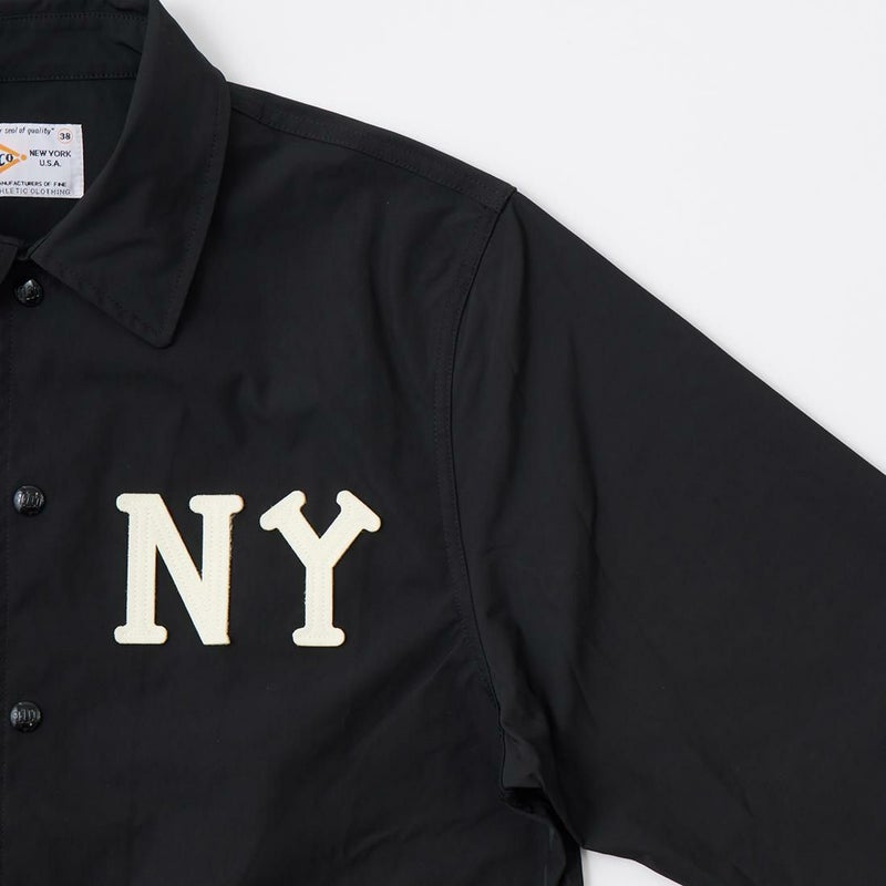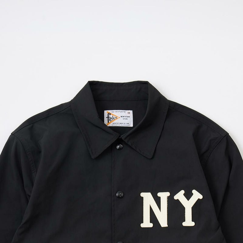 FELCO(フェルコ)のCLASSIC FIT SET IN SLEEVE UNLINED COACH JACKET SNAP BUTTON FRONT NEW YORK BLACK YANKEES。ナイロンを使用したスナップフロントのコーチジャケット。襟は大きめで風防のチンストラップを装備。ポケットはフロントに2つ。背面右側にはデザインとしてもポイントになるポケットを配置。袖口はスナップでサイズ調整が可能なゴム仕様。全体的にゆとりを持たせたクラシックフィット。こちらはニューヨークブラックヤンキースのワッペンが採用されたモデル。左裾にニグロリーグのオフィシャルタグも付いています。