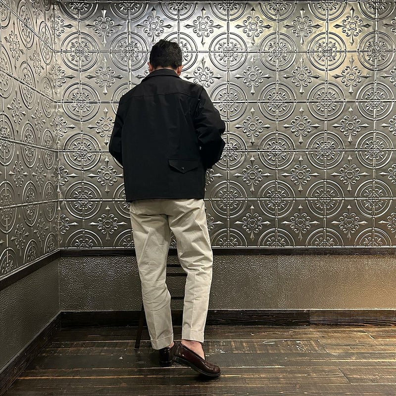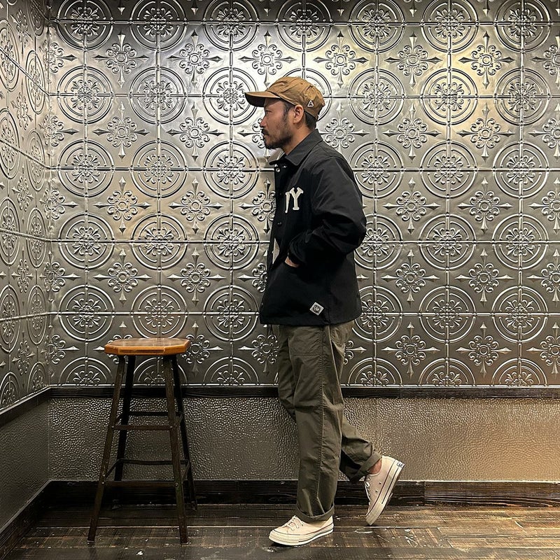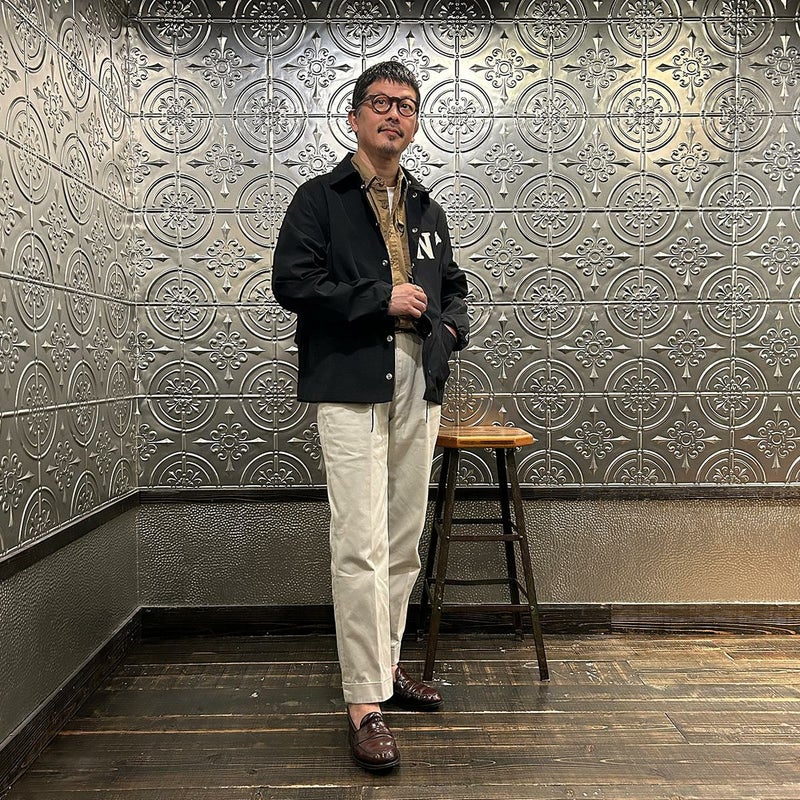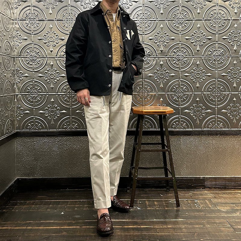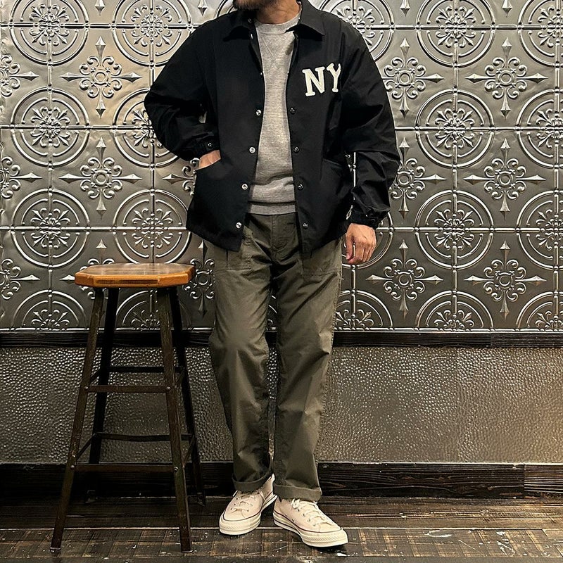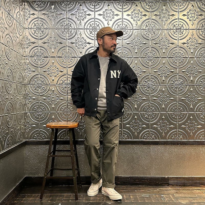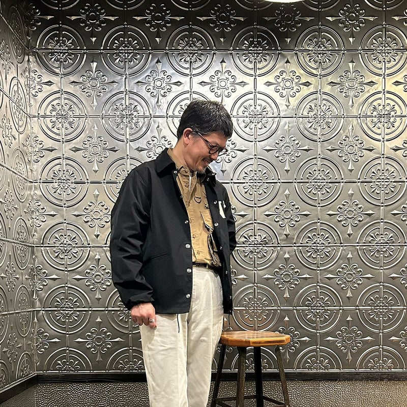 170センチ68キロの体型で「38」サイズで丁度良い着用感です。以前のフィットとは違いゆったりとしたつくりのクラシックフィット仕様。インナーに地厚めのパーカーやスウェットを着てもゆったりとしたサイズ感で着れますよ。また裏地のない1枚仕立てとあって着方次第では長いシーズン楽しめる1着。今シーズン一押しの二グロリーグシリーズのコーチジャケット。スポーツスタイル好きな方にはオススメしたいアイテムです。