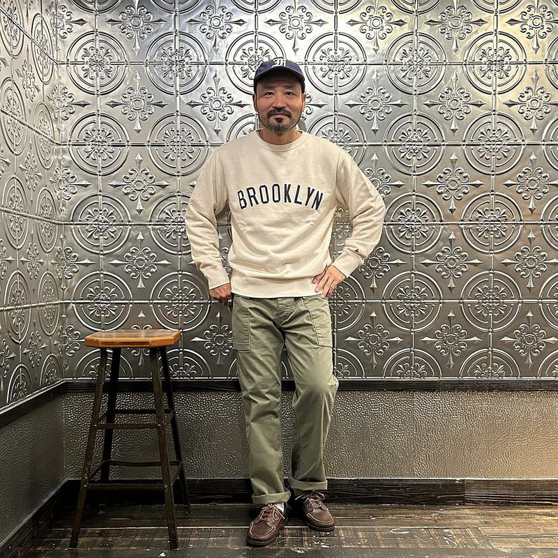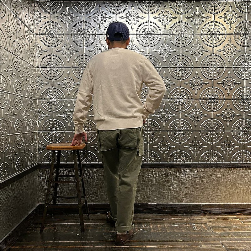 5. FELCO (フェルコ) CLASSIC FIT 10oz TERRY BINDER CREW SET IN SWEAT W/NLBM PRINT - BRG1 NATURAL_NAVY PRINT