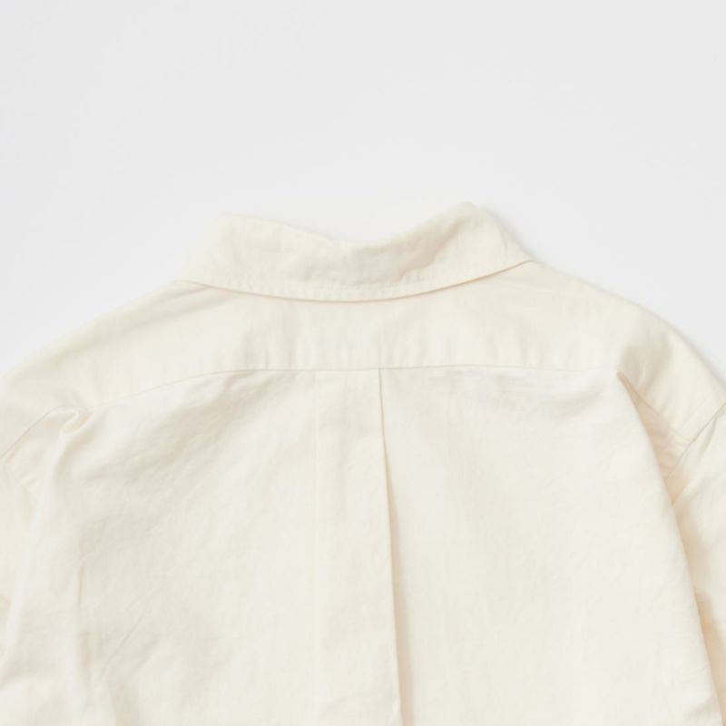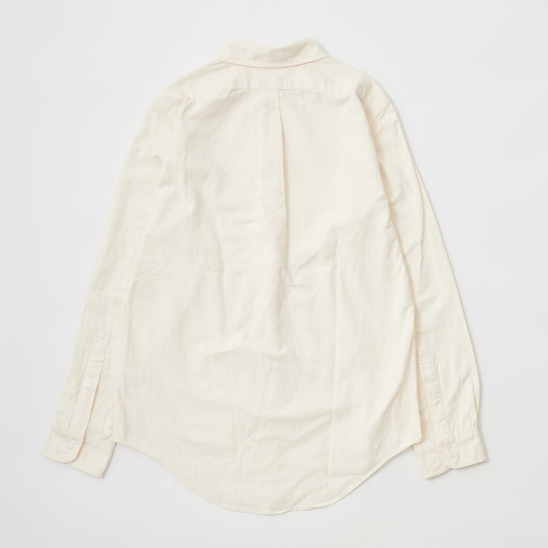 RESOLUTE(リゾルト)の林さんがデザインしたFAR EAST MANUFACTURING(ファーイーストマニュファクチャリング)のL/S OXFORD BD SHIRT。1970年代に販売されたアイコン的モデルのディテールを忠実に再現しながら、現代的なフィットに落とし込まれたボタンダウンシャツ。フロントボタンは6ボタン仕様。袖下から脇にかけての巻き縫いは、ヴィンテージシャツの細い巻き縫いを再現。前立て裏のチェーンステッチは、シャツ専用のユニオンスペシャルのミシンを使用するなど拘りの縫製仕様。芯地を極力省くことで、堅すぎず、柔らかすぎない着心地の良い仕上がり。 生地はスーピマコットンを使用。程よいコシがあるが堅すぎず、肌触りの良く着用感も抜群の素材です。ジャストサイズをお選びいただけるように一つのネックサイズに対して、4サイズの裄丈(袖丈)が展開されています。
