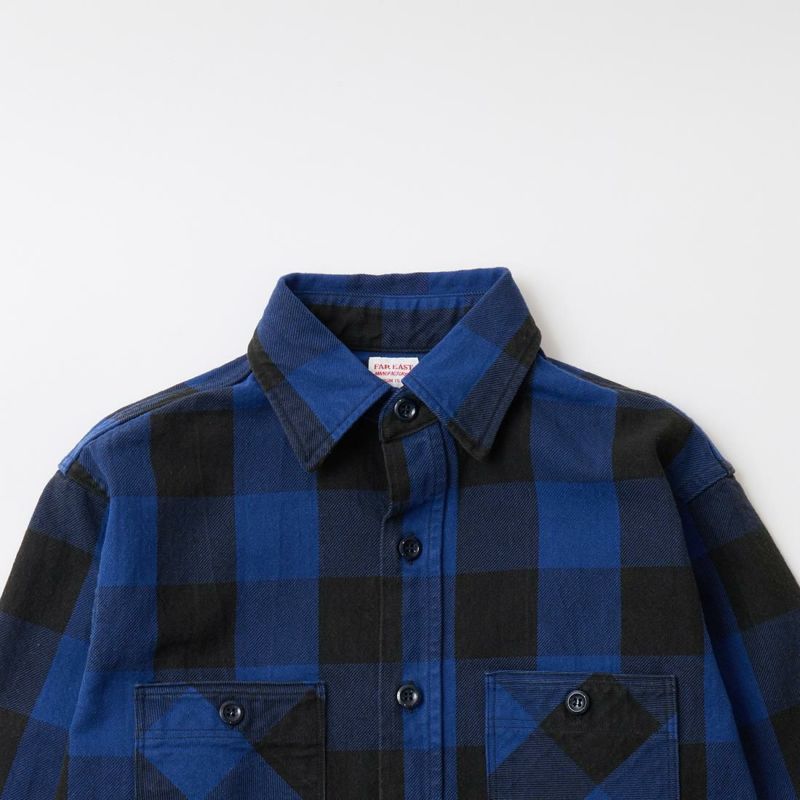 RESOLUTE(リゾルト)のデザイナー林 芳亨氏が監修したFAR EAST MANUFACTURING(ファーイーストマニュファクチャリング)の26年秋冬の新型のWORK SHIRT BUFFALO PLAID。古き良きアメリカのワークシャツのディテールを踏襲。サイズ感は古臭すぎず、今どき過ぎずのベーシックで長く着れるサイズ感。厚手のバッファローチェック生地。アメリカンクラシックなアウトドアブランドのイメージ。古いものだとウール素材が多いですが、こちらはヘビーウェイトのコットン。経年変化も楽しめます。【26AW Pre-Order】