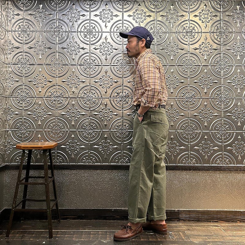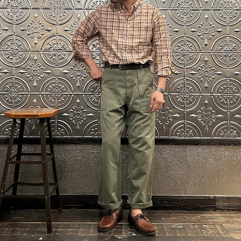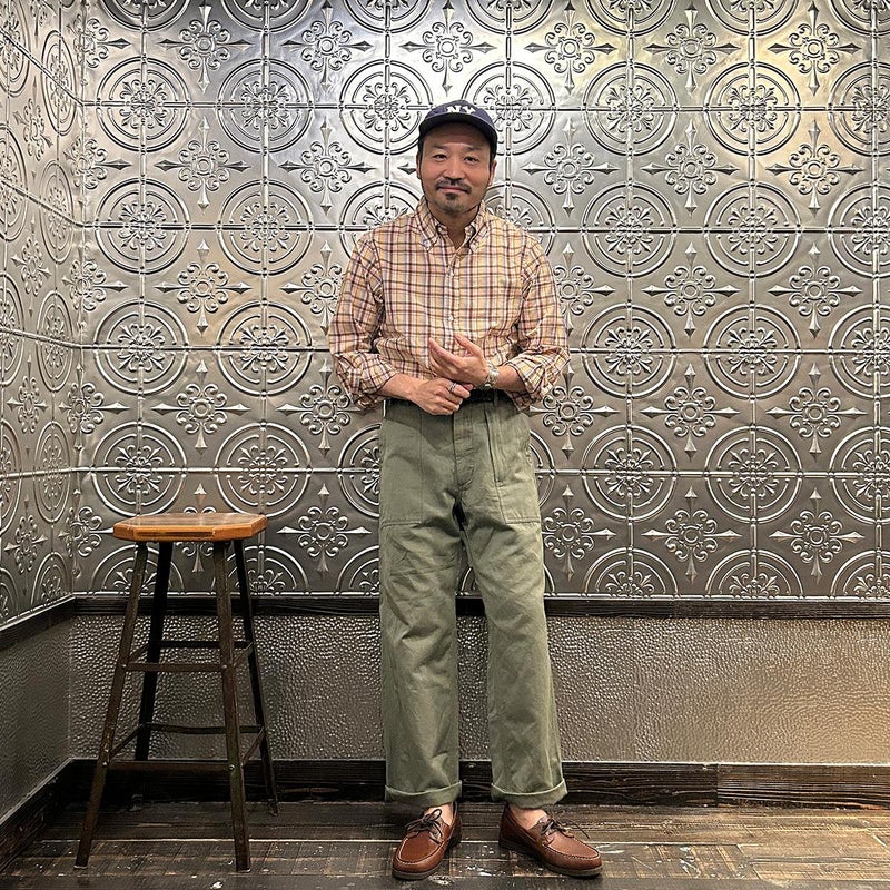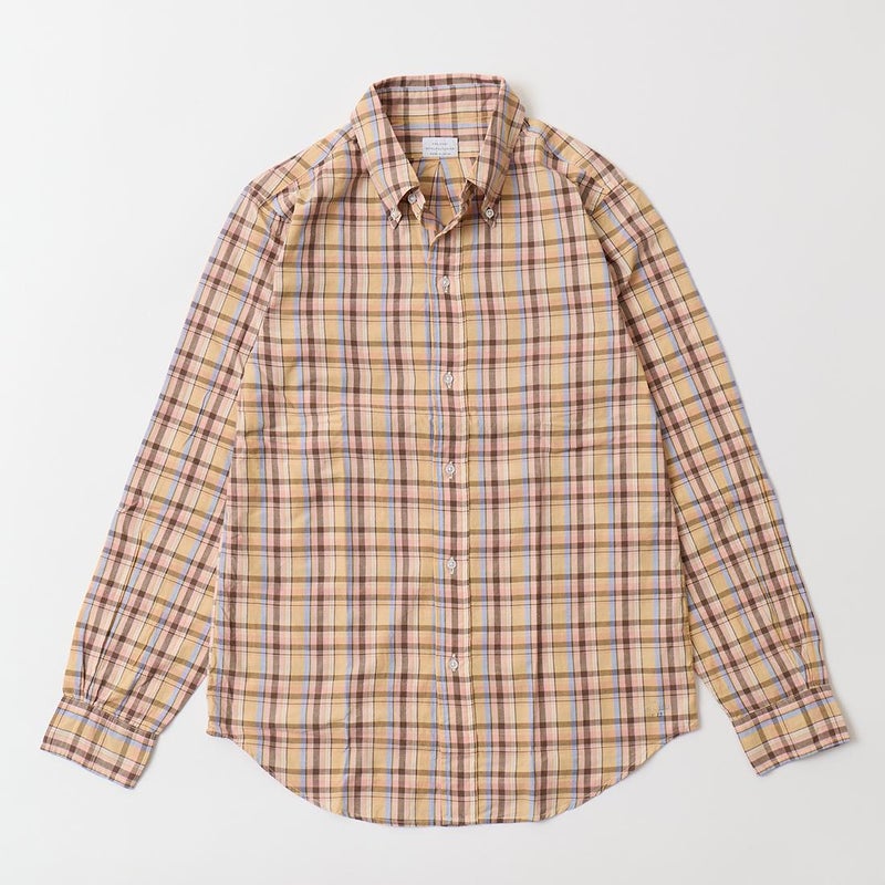 RESOLUTE(リゾルト)の林さんが監修したFAR EAST MANUFACTURING(ファーイーストマニュファクチャリング)のL/S COTTON MADRAS PLAID BD SHIRT。1970年代に販売されたボタンダウンシャツのアイコン的モデルのディテールを忠実に再現しながら、現代的なフィットに落とし込んだシャツ。フロントボタンは6ボタン仕様。袖下から脇にかけての巻き縫いは、ヴィンテージシャツの細い巻き縫いを再現。前立て裏のチェーンステッチは、シャツ専用のユニオンスペシャルのミシンを使用するなど拘りの縫製仕様。芯地を極力省くことで、堅すぎず、柔らかすぎない着心地の良い仕上がり。生地はシーズンファブリックのマドラスチェック生地。生地にブリーチを施し最初から雰囲気良く退色した風合い。ジャストサイズをお選びいただけるように一つのネックサイズに対して、4サイズの裄丈(袖丈)を展開。
