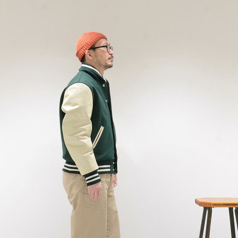 米国創業のスポーツウェアブランド「GB SPORTS(ジービースポーツ)」。 カリフォルニアの自社工場で拘りのアワードジャケットを1922年の創業から作り続ける伝統と拘りを 持つビッグネーム。80年の歴史を持ち今もなお世界中で愛されるそのアイテムは、上質なメルトンのボディーに、 しなやかなカウハイドを使用する等、一生物と呼ぶにふさわしい逸品ばかり。 2004年からはその80年の歴史を 一新するべくブランド名を「ゴールデンベアスポーツウェア」から「GB SPORTS」へと改名。 物作りに対する確固たる姿勢はそのままに、従来通りサンフランシスコの自社工場で生産を行い、 GB SPORTSとしての新しいオリジナリティを表現するアイテムからはその拘りが感じられます。
