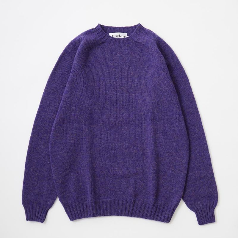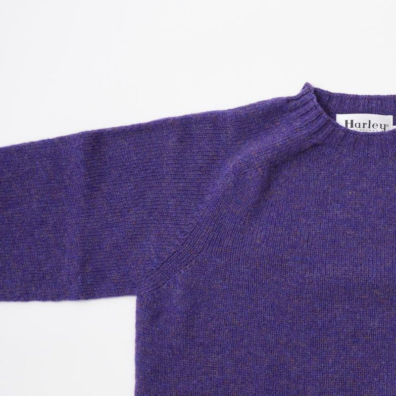 5. HARLEY OF SCOTLAND (ハーレーオブスコットランド) PURE NEW WOOL SADDLE SHOULDER CREW NECK SWEATER - IRIS