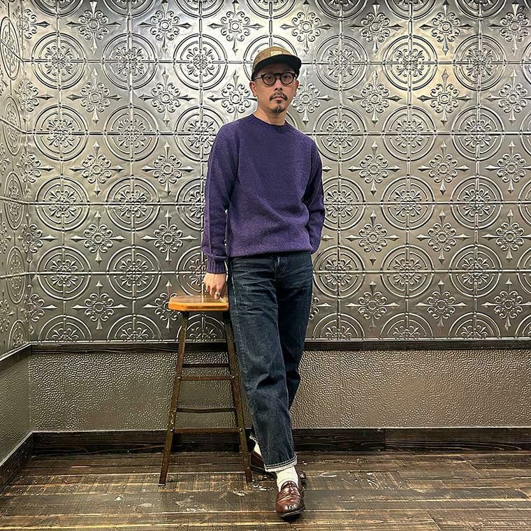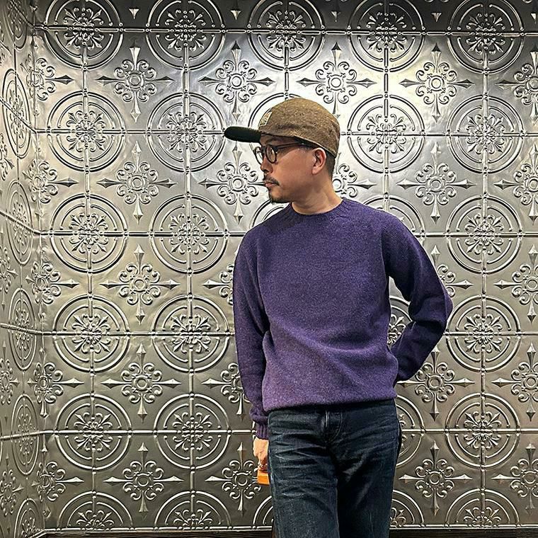 確かなクオリティとインポートブランドながらもコストパフォーマンスに優れたアイテムを数多くリリースするHARLEY OF SCOTLAND(ハーレーオブスコットランド)。縫い目のない一つ凪で作られるシームレス製法が特徴。ウールの温かみが感じられるミドルゲージの編地。こちらは着丈、袖丈を2.5センチ程度長く変更してもらった別注モデルになります。