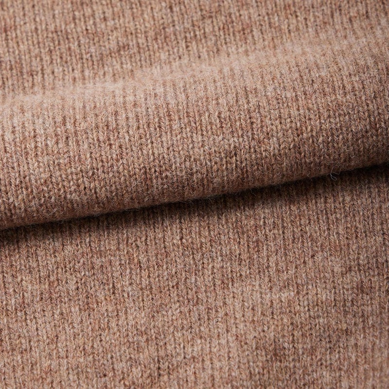 確かなクオリティとインポートブランドながらもコストパフォーマンスに優れたアイテムを数多くリリースするHARLEY OF SCOTLAND(ハーレーオブスコットランド)。縫い目のない一つ凪で作られるシームレス製法が特徴。ウールの温かみが感じられるミドルゲージの編地。こちらは着丈、袖丈を2.5センチ程度長く変更してもらった別注モデルになります。