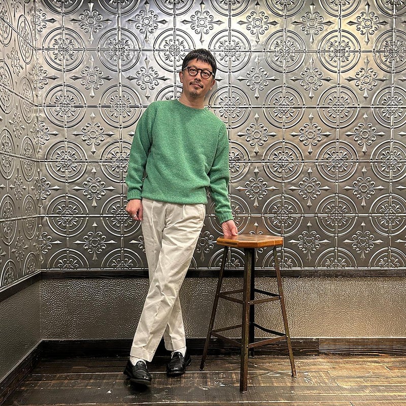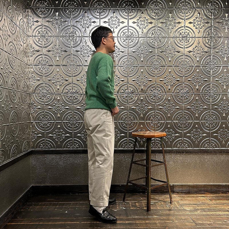 確かなクオリティとインポートブランドながらもコストパフォーマンスに優れたアイテムを数多くリリースするHARLEY OF SCOTLAND(ハーレーオブスコットランド)。縫い目のない一つ凪で作られるシームレス製法が特徴。ウールの温かみが感じられるミドルゲージの編地。こちらは着丈、袖丈を2.5センチ程度長く変更してもらった別注モデルになります。
