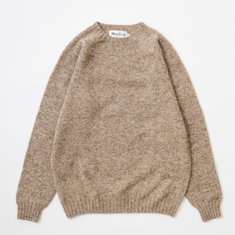HARLEY OF SCOTLAND (ハーレーオブスコットランド) PURE NEW WOOL SADDLE SHOULDER CREW NECK SWEATER - GLODDUST