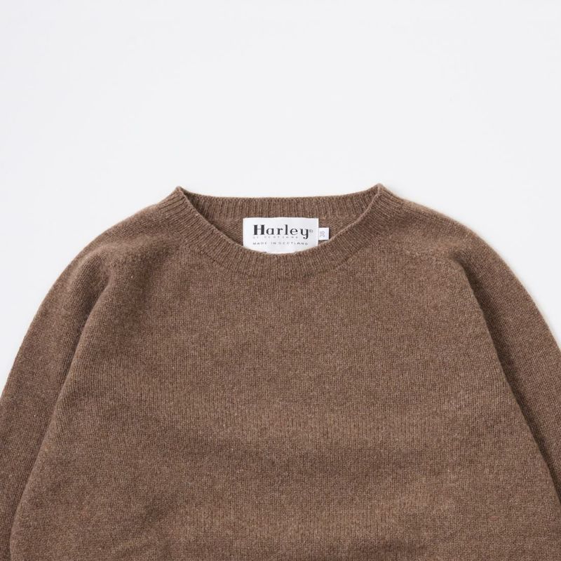 HARLEY OF SCOTLAND (ハーレーオブスコットランド) CREW NECK SWEATER 90% MERINO WOOL 10% CASHMERE - CACAO