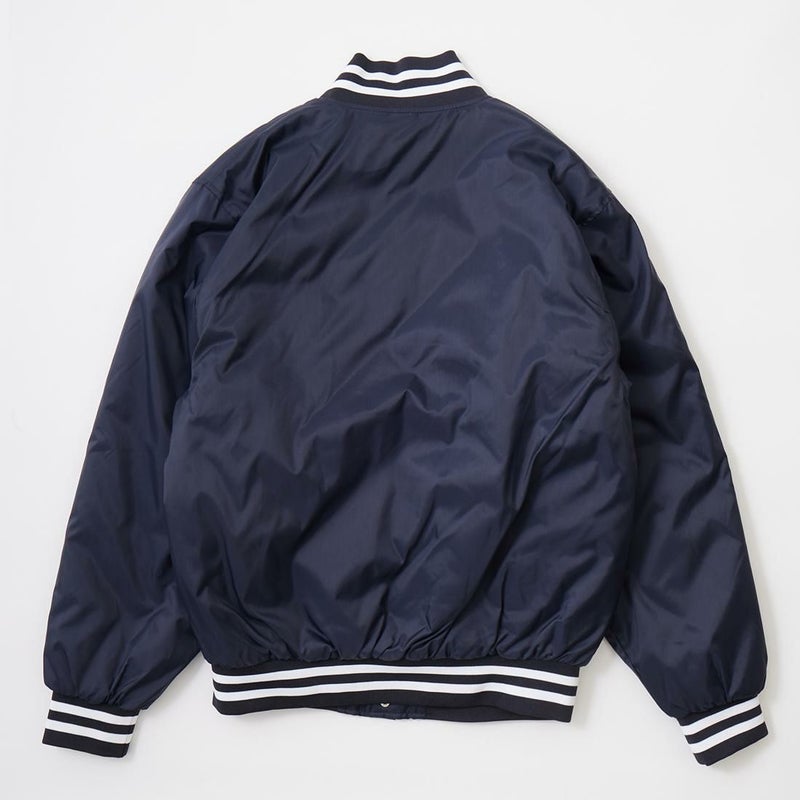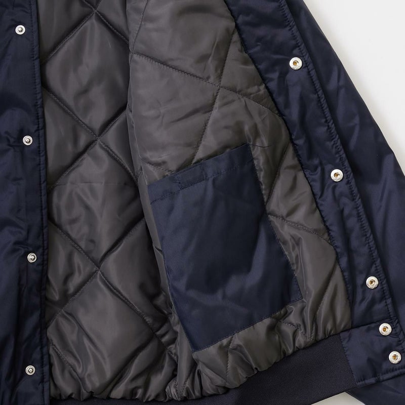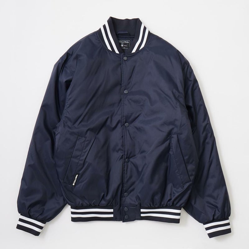 HOLLOWAY (ホロウェイ)のHERITAGE。光沢の少ないナイロンキャンパス素材を使用したアワードジャケット。襟周り、袖口、裾部分は2本ライン入りのリブニット仕様。前立て部分はスナップボタン仕様。腰部分にはスラッシュポケットを装備。内側には保温性に優れた起毛素材を採用。裏地はキルティングが装備されており秋から春にかけて3シーズン着用して頂けます。腕周りは身頃と同じく太めのつくりからゆったりとした軽くて着心地の良い1着です。