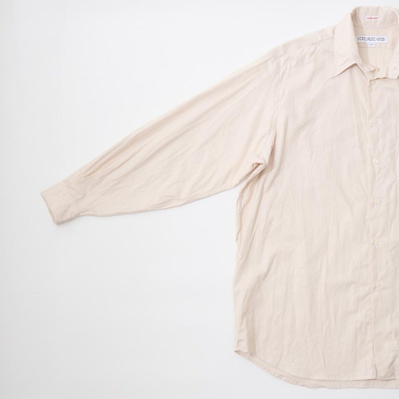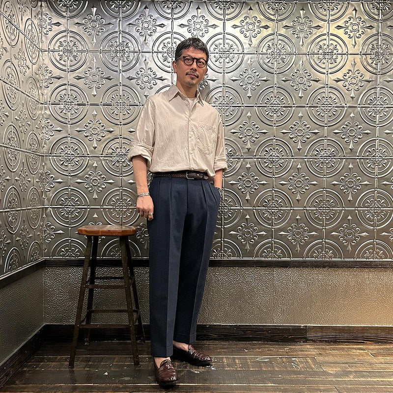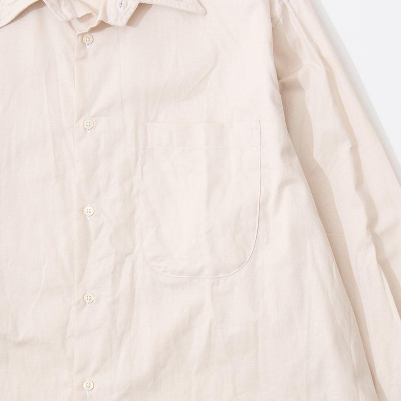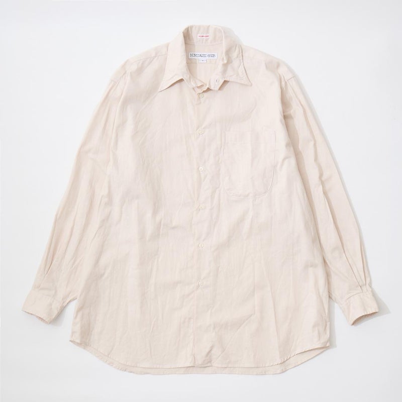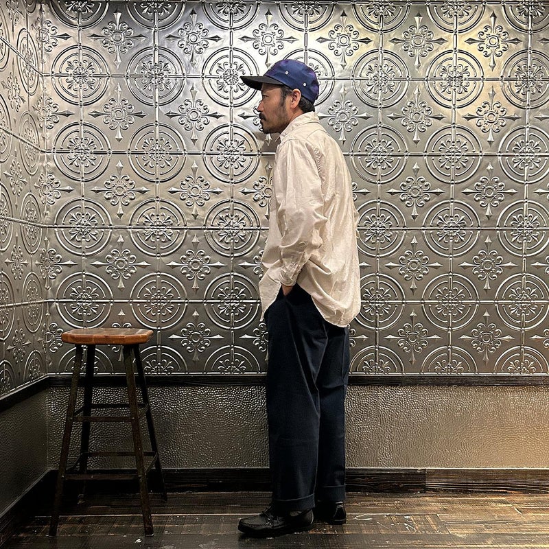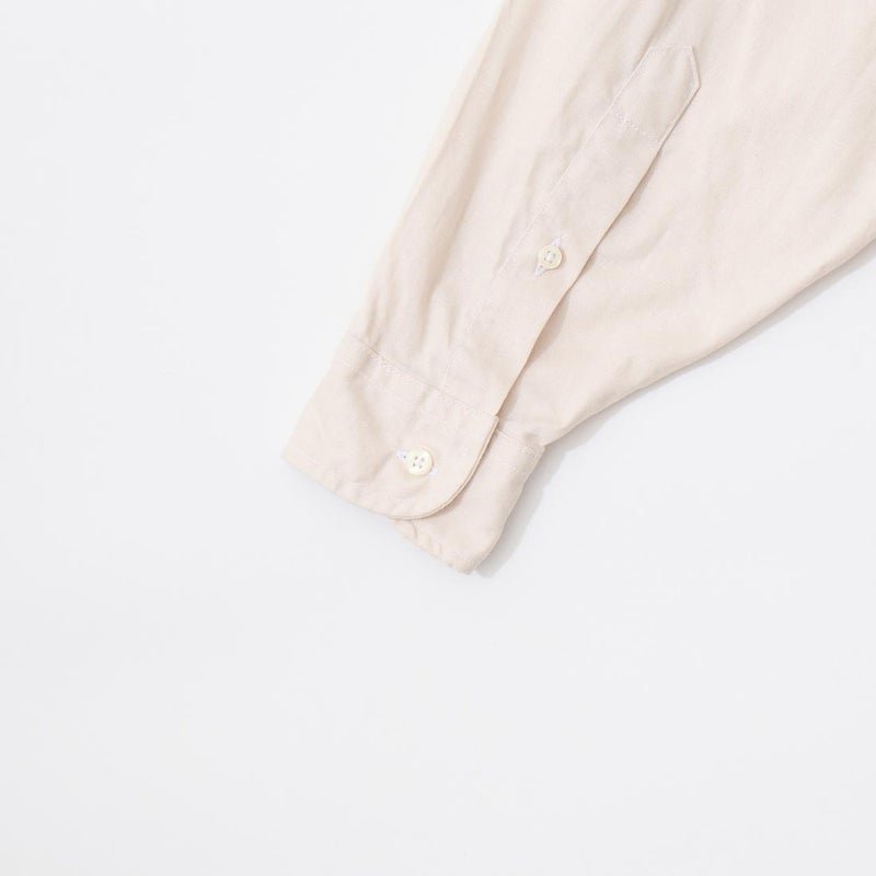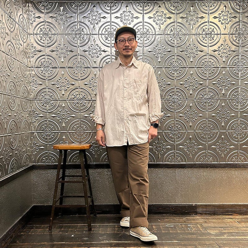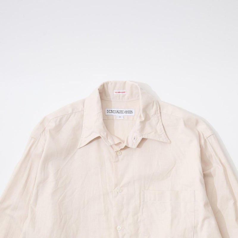 INDIVIDUALIZED SHIRTS(インディビジュアライズドシャツ)に別注したCABANA SHIRT HERITAGE CHAMBRAY。インディビジュアライズドシャツでは珍しいリゾート感のある襟。台襟と襟が一体になっている仕様の「CABANA カバナ」という襟型。フロントは前立てのないフレンチフロント。左胸のパッチポケットはあえて大き目サイズのモノをセレクト。カフは小さめでカジュアル感の強い仕様。袖も従来の袖よりも太いワイドスリーブ仕様。全体的にシルエットはゆったり目。素材はアメリカンな粗野な雰囲気を持つヘリテージシャンブレー。納品時は未洗いのものを当店で一回水洗いをしてあります。