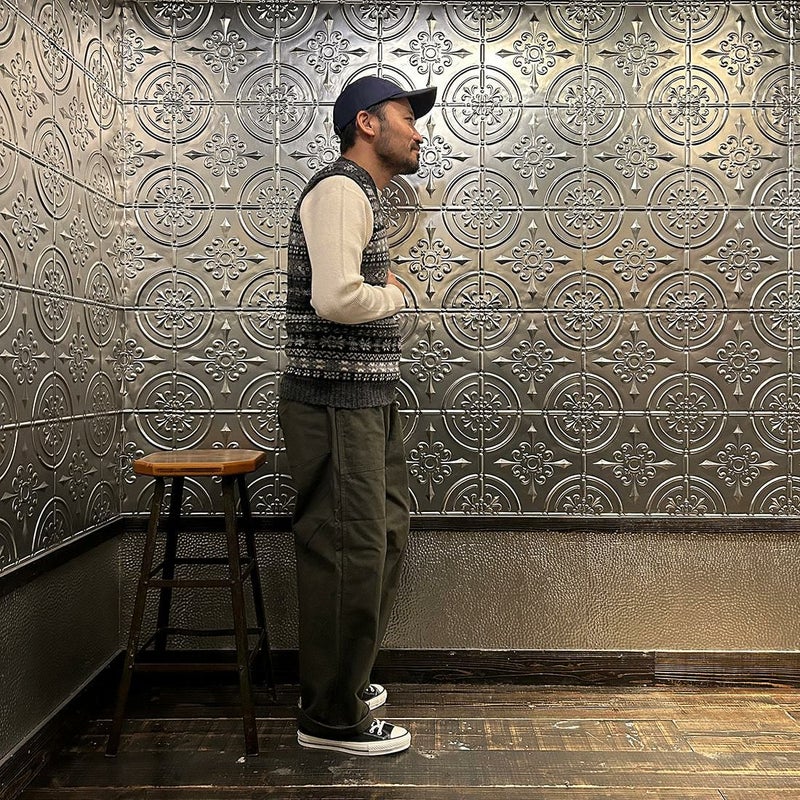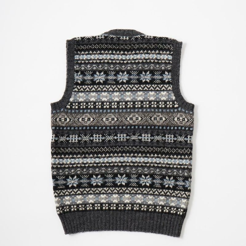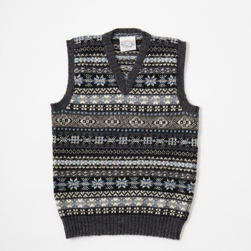 フェアアイル柄 Vネック ニット ベスト メンズ スコットランド製