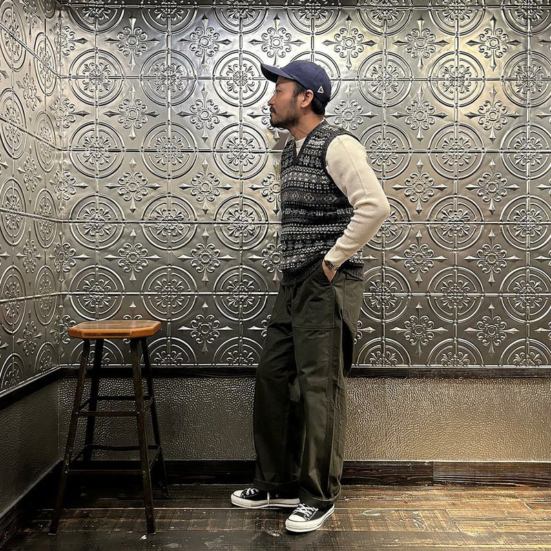 172センチ60キロでサイズは38でタイトすぎず大きすぎない丁度良いサイズ感です。ジャミーソンズの代名詞的なフェアアイル柄。伝統ある編み地の柄は長く定番として着れるアイテムです。流行り廃りもなくずっと着れるのが嬉しいですね。柄や色違いで複数枚でも所有したくなるアイテムです。ジャケットやアウターのインナーにすると抜群の存在感です。