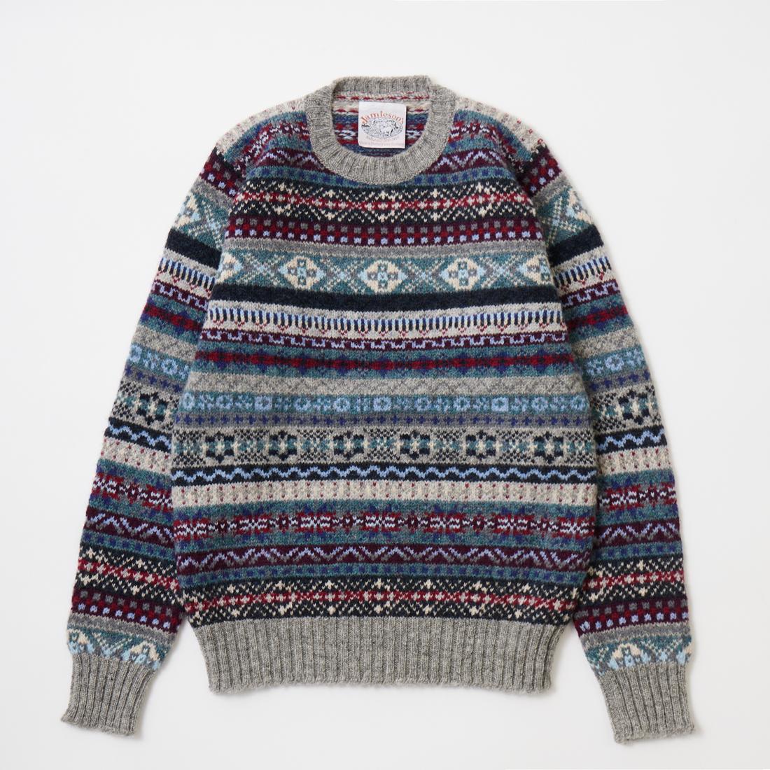 フェアアイル柄 クルーネック ニット メンズ スコットランド製