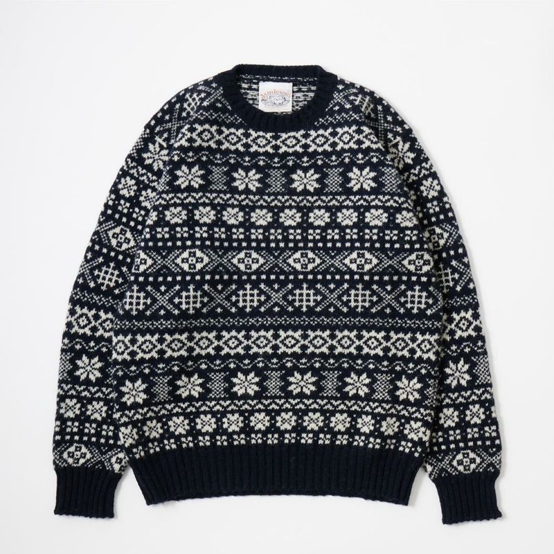 フェアアイル柄 クルーネック ニット メンズ スコットランド製