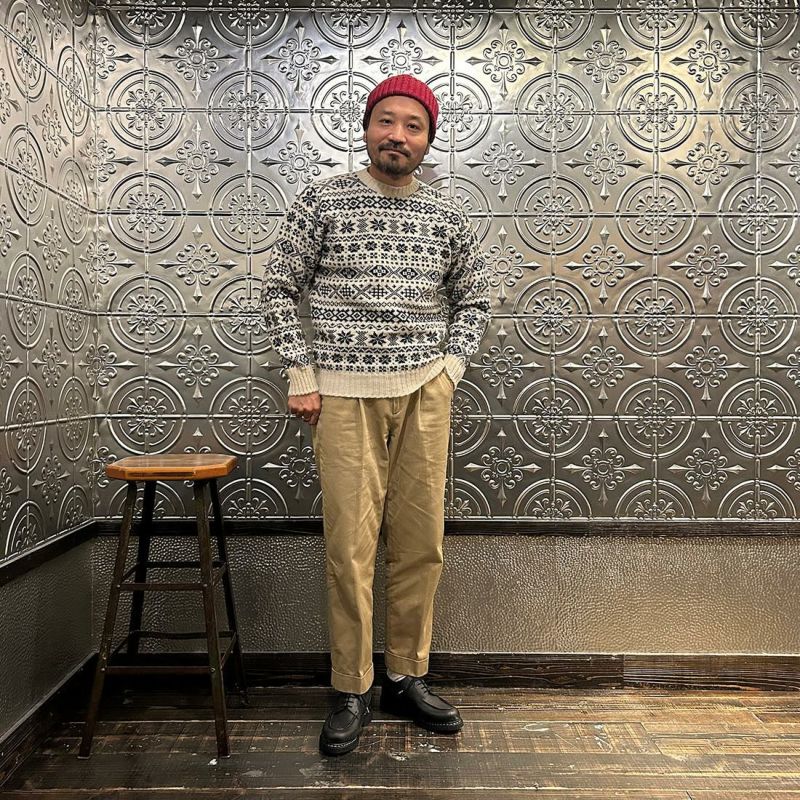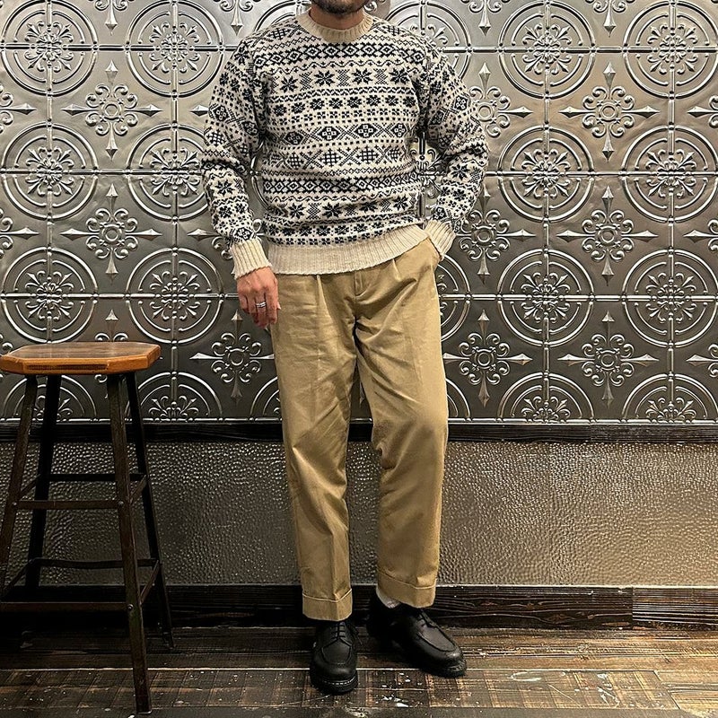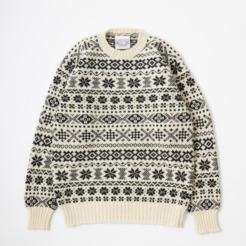 フェアアイル柄 クルーネック ニット メンズ スコットランド製