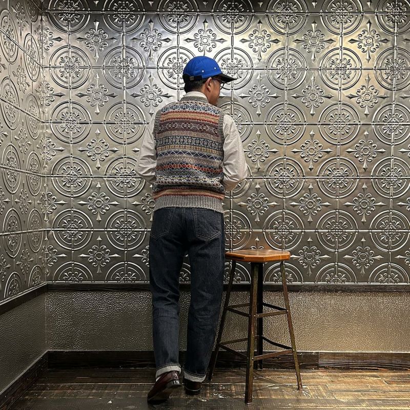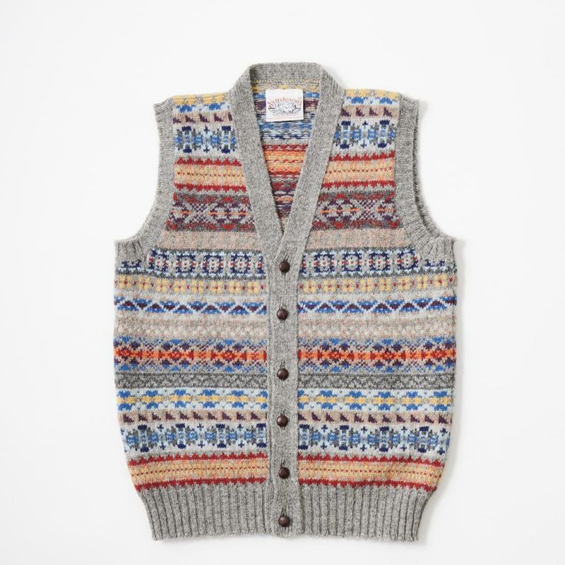 フェアアイル柄 Vネック ニット ベスト メンズ スコットランド製