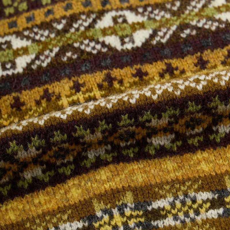 シェットランド島最古のニットファクトリー。 120年以上前から変わらない、伝統に則った製法で丁寧に編まれています。 染料も植物から精製され、ナチュラルでアーシーなぬくもりのある風合いが魅力。 かのウィンザー公も愛用したことで有名な本物のフェアアイルニットです。
