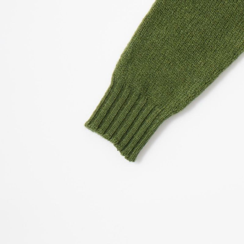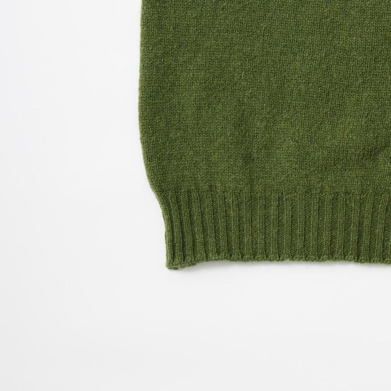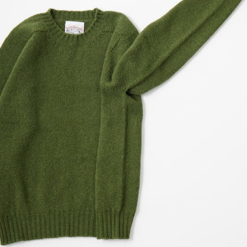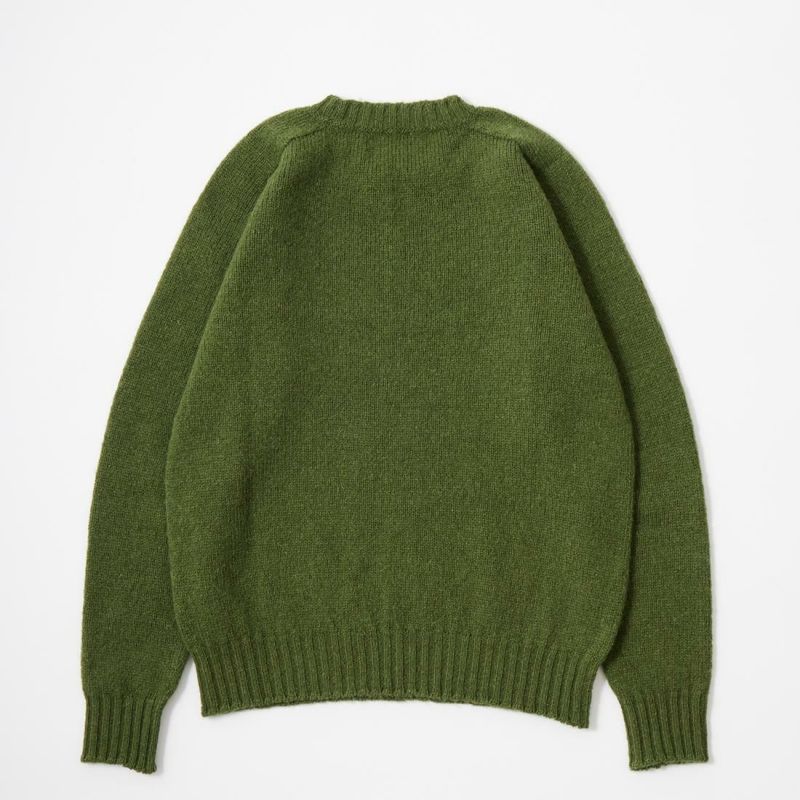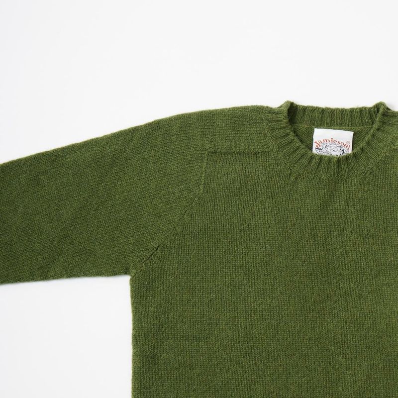 JAMIESON'S(ジャミーソンズ)のPLAIN SADDLE SHOULDER CREW NECK。シンプルな無地のシェットランドセーター。肩はラグランスリーブの一種のサドルショルダー。肩部分が並行でラグランスリーブより切り替えの形が角張った形。鞍(サドル)をかけたような見た目が由来。袖と脇のサイドシームが無いホールガーメントで編み上げたシームレス仕様。スタンダードなデザインでスタイルを選ばない使い勝手の良い1着です。