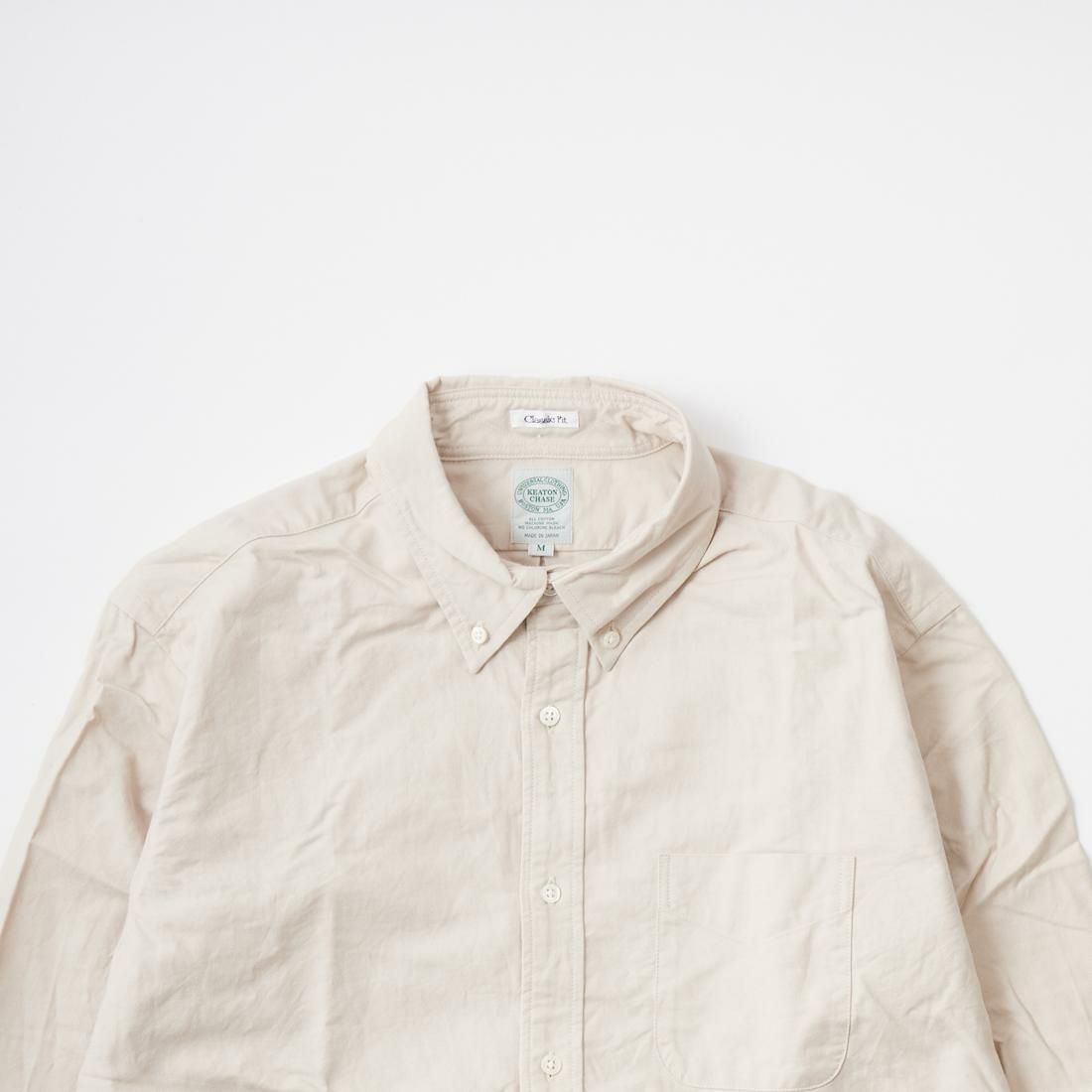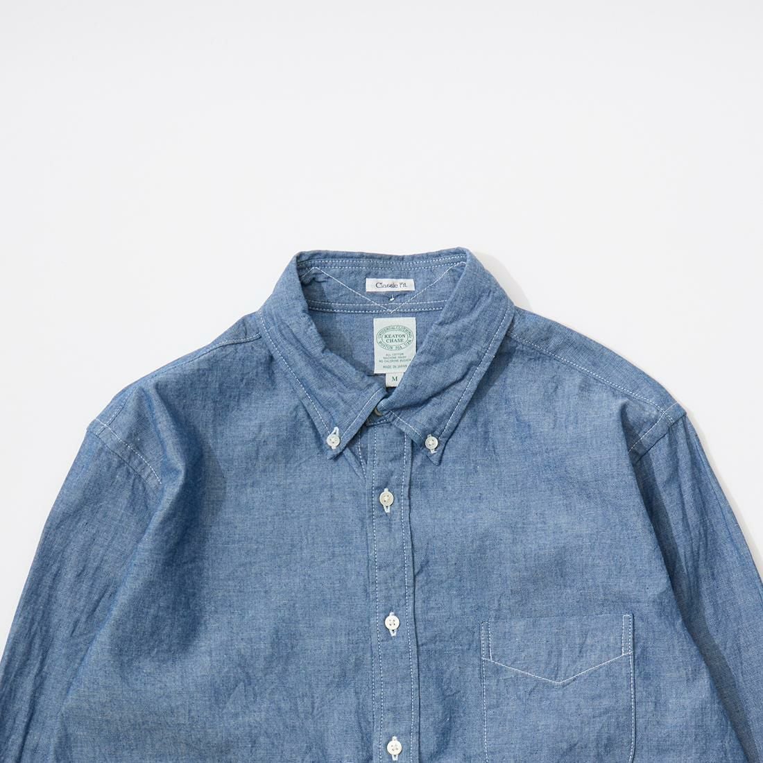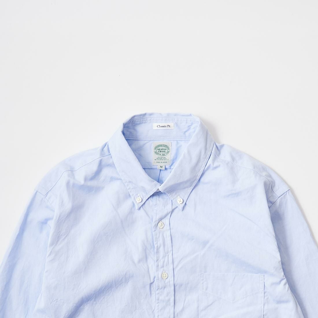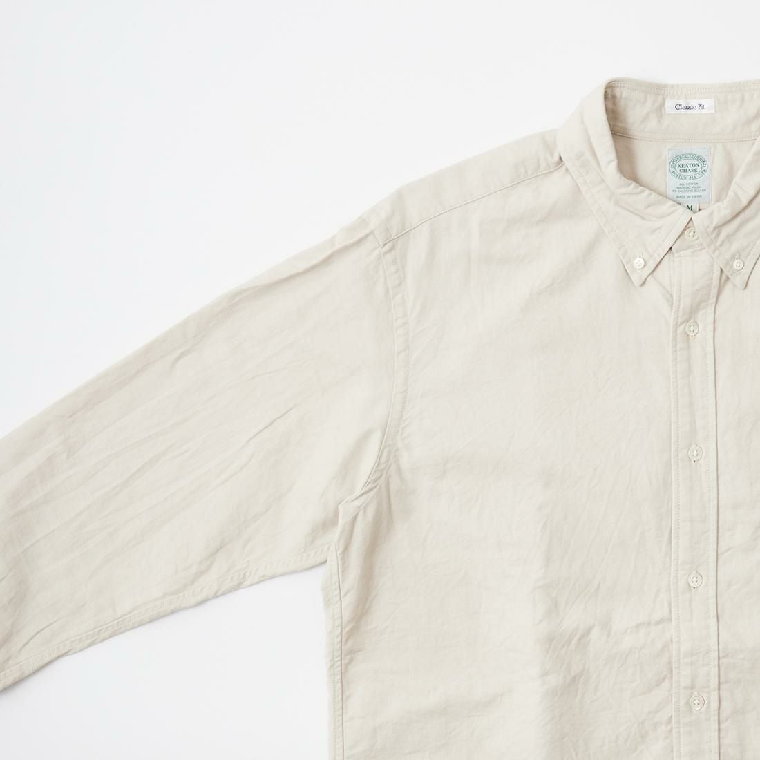 アメリカはボストン郊外に建つ老舗のシャツファクトリーで生産されるKEATON CHASE U.S.A.。 旧き良きのアメリカのシャツの象徴的なディテールともいえる シングルニードルのボタンダウンシャツが同メーカーの代表的なアイテムとなります。 全てが合理化に向く時代にアメリカでシングルニードルでシャツを縫っている数少ないファクトリーブランドです。 一枚一枚丁寧に縫われるそのシャツはUSメイドに拘るその誇りと共に、時代を超えて愛される本物。 毎シーズン様々な生地で提供されるアイテムは勿論、定番のオックスフォードやシャンブレーのシャツは 非常に人気が高く様々な世代に愛されいます。