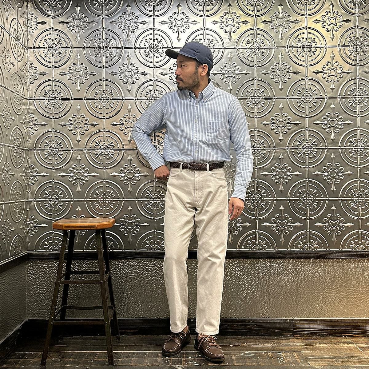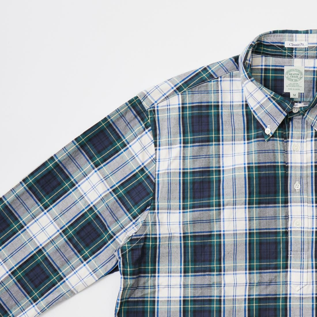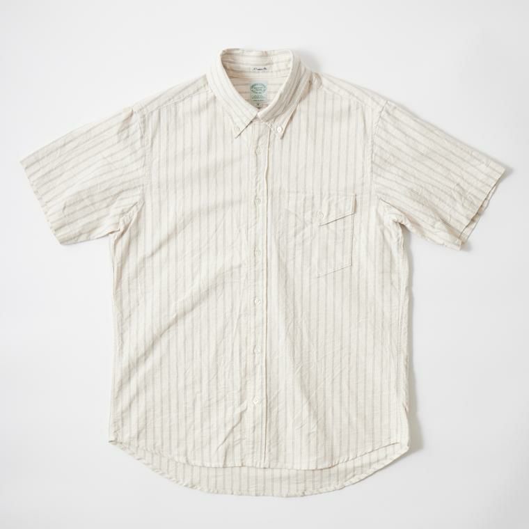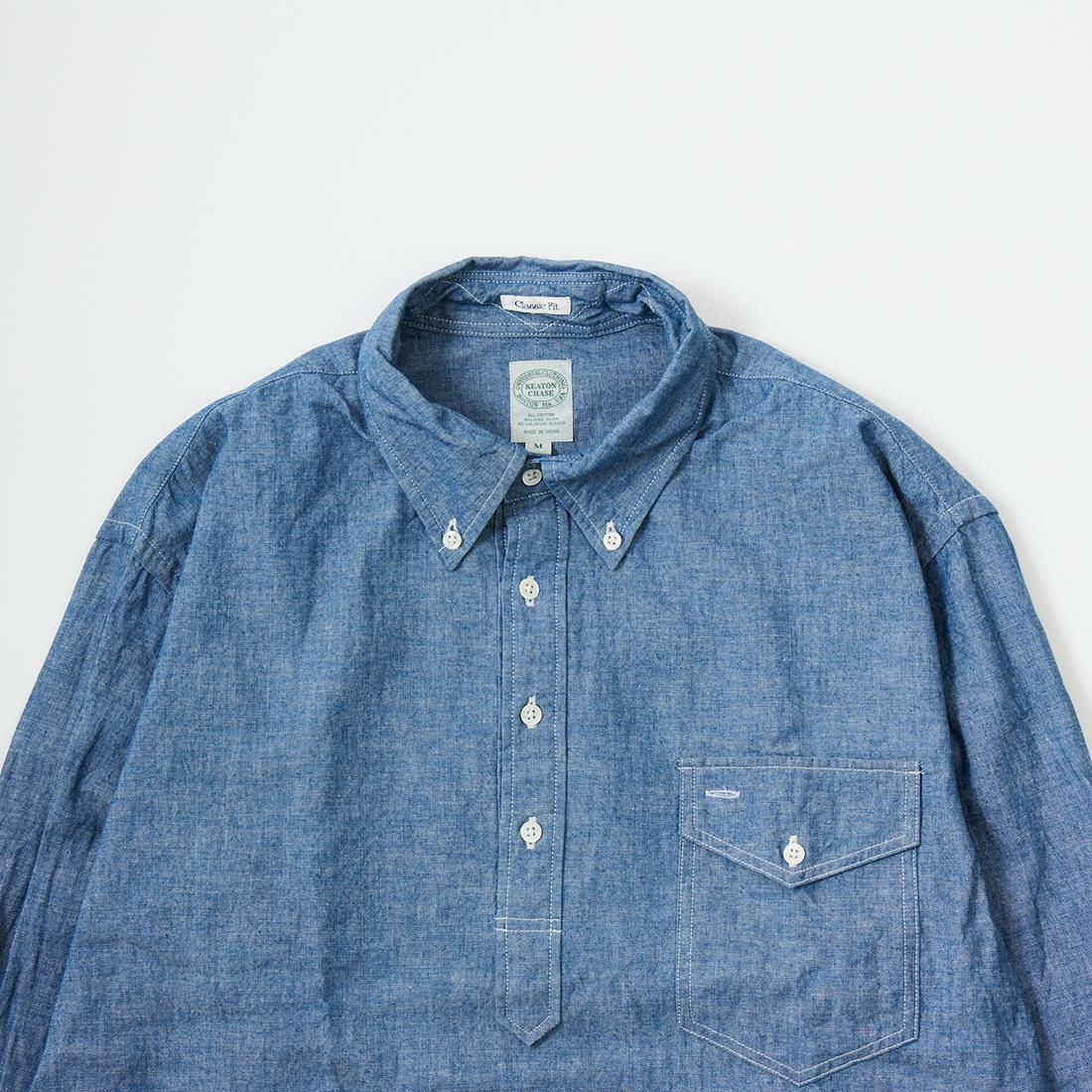 アメリカはボストン郊外に建つ老舗のシャツファクトリーで生産されるKEATON CHASE U.S.A.。 旧き良きのアメリカのシャツの象徴的なディテールともいえる シングルニードルのボタンダウンシャツが同メーカーの代表的なアイテムとなります。 全てが合理化に向く時代にアメリカでシングルニードルでシャツを縫っている数少ないファクトリーブランドです。 一枚一枚丁寧に縫われるそのシャツはUSメイドに拘るその誇りと共に、時代を超えて愛される本物。 毎シーズン様々な生地で提供されるアイテムは勿論、定番のオックスフォードやシャンブレーのシャツは 非常に人気が高く様々な世代に愛されいます。