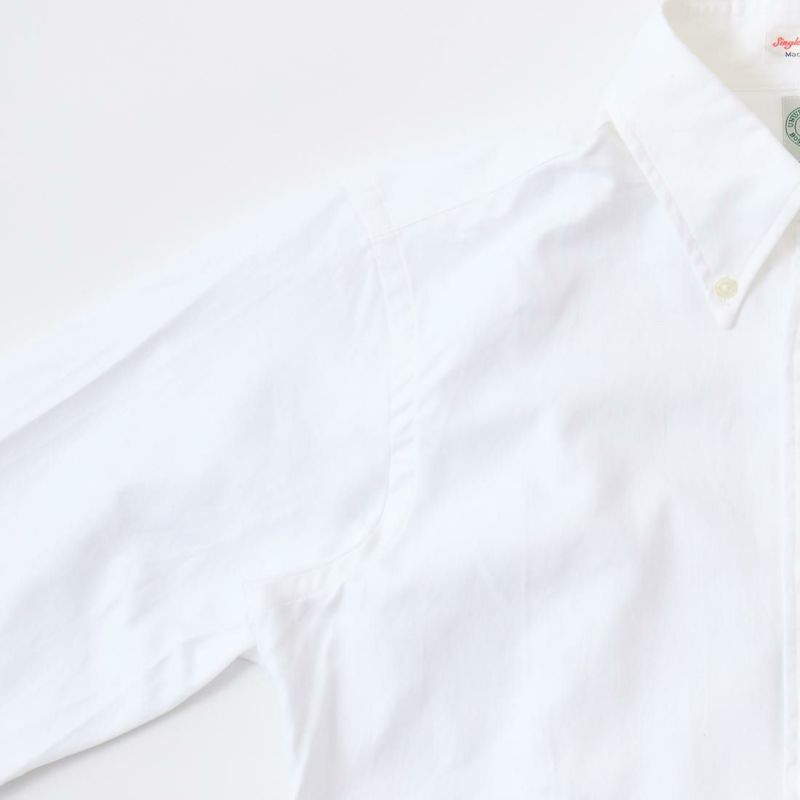 アメリカ製シャツレーベル「KEATON CHASE USA(キートンチェイスUSA)」のL/S STANDARD BD FINE OXFORD SHIRT LIGHT LINING。綺麗なロールの大きめの襟、背面のボックスプリーツやハンガーループ等の王道ディテールは、旧き良きアメリカを連想させるクラシックな雰囲気。そのクラシックさとは対照的に、スッキリとした現代的なシルエットに仕上がっています。素材にやや軽めでサラッとした肌触りのオックスフォードを使用。襟芯は薄いものを採用し、肌当たりが少なくストレスを感じにくい仕様にされています。一枚で着ることが楽しみになるほど綺麗なシルエットとコンパクトなサイズ感が魅力で、シャツアウトした時の着丈のバランスなどアメリカ製ではありそうで無かった痒い所に手が届く一枚です。