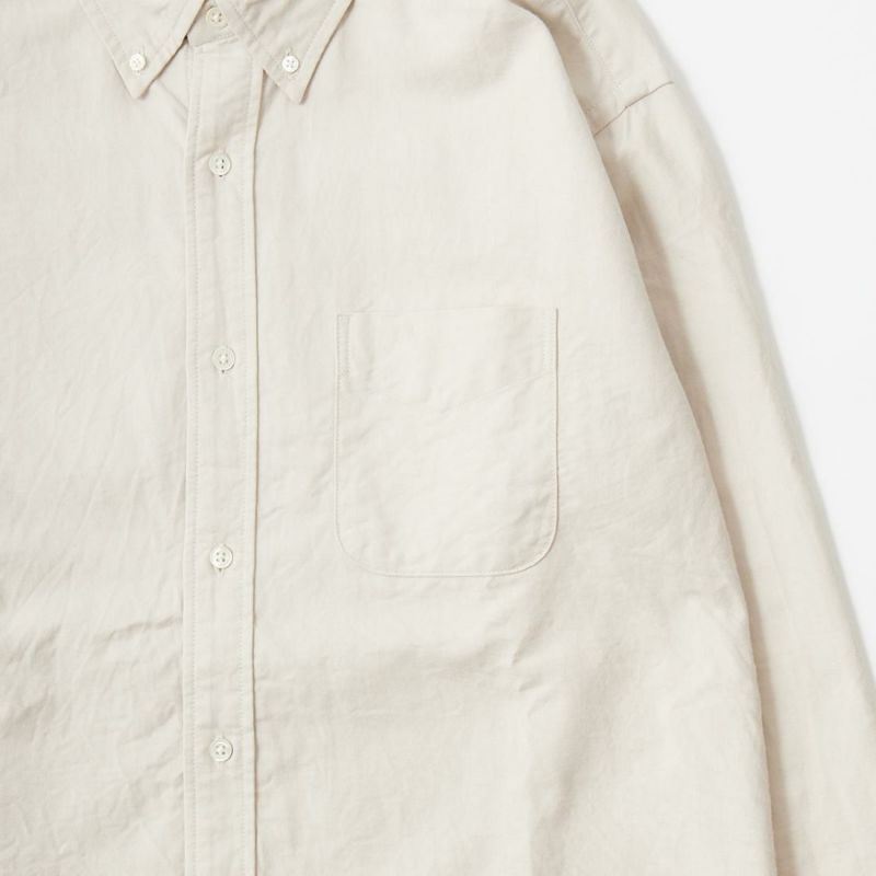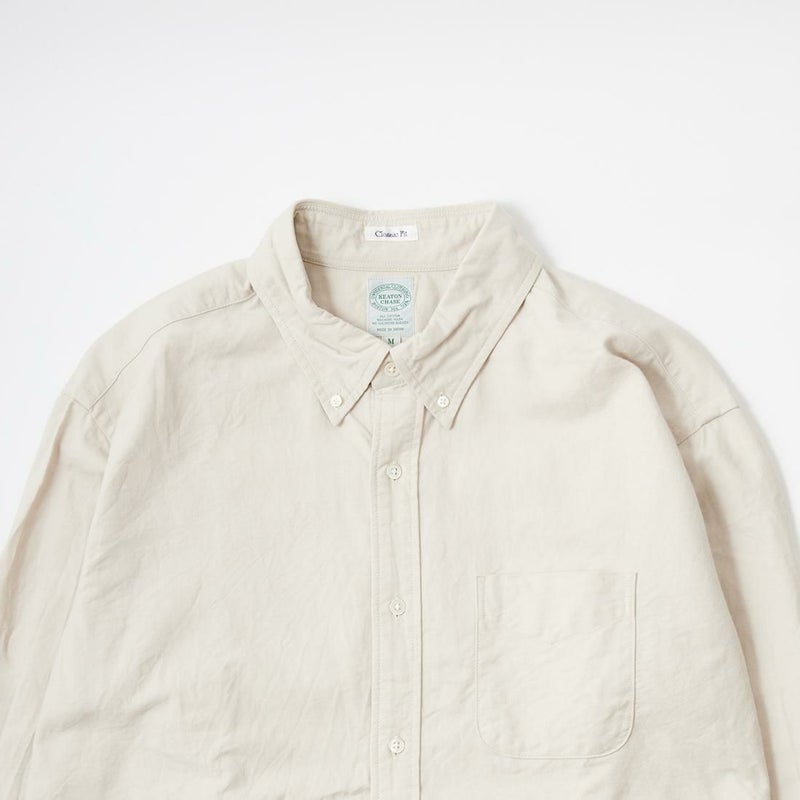 KEATON CHASE USA(キートンチェイスUSA)のL/S CLASSIC FIT BD SHIRT PREMIUM OXFORD。日本生産ラインのフルオープンの長袖ボタンダウンシャツ。サラッとしたライトウェイトのオックスフォードの生地を使用。左胸にフラップポケットが配置され、背面はボックスプリーツ仕様。アメリカシャツらしいチョークボタン付き。シルエットは全体的に適度なゆとり感を持ったクラシックフィット。ボタンダウンのカッチリとした感じと程よいリラックス感のあるシルエットが良い雰囲気に仕上がっている1着。