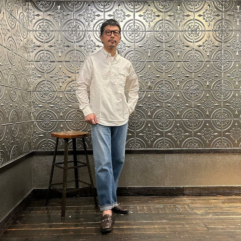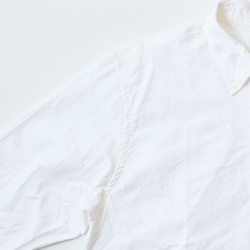170センチ68キロやや肩幅広めの私の体型でサイズ選びはMサイズでゆったりとした丁度良い着用感です。身幅、アームホール、肩幅は広めにつくられていることから脱ぎ着し易い仕上がり。素材はシーズン問わず使って頂ける使い勝手の良い軽めのオックスフォード生地を使用。洗いかかっていることで大きな縮みもなく着続けられるのも嬉しい1着。流行り廃りのないシンプルなプルオーバーボタンシャツ。アメトラ、アイビー、スポーツスタイル好きな方には心擽られる1着です。