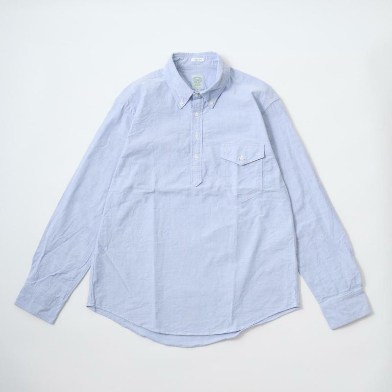 KEATON CHASE USA(キートンチェイスUSA)のL/S CLASSIC FIT PULLOVER BD SHIRT PREMIUM OXFORD。日本生産ラインのプルオーバーの長袖ボタンダウンシャツ。サラッとしたライトウェイトのオックスフォードの生地を使用。左胸にフラップポケットが配置され、背面はボックスプリーツ仕様。アメリカシャツらしいチョークボタン付き。シルエットは全体的に程よいゆとり感を持ったクラシックフィット。ボタンダウンのカッチリとした感じと程よいリラックス感のあるシルエットが良い雰囲気に仕上がっている1着。
