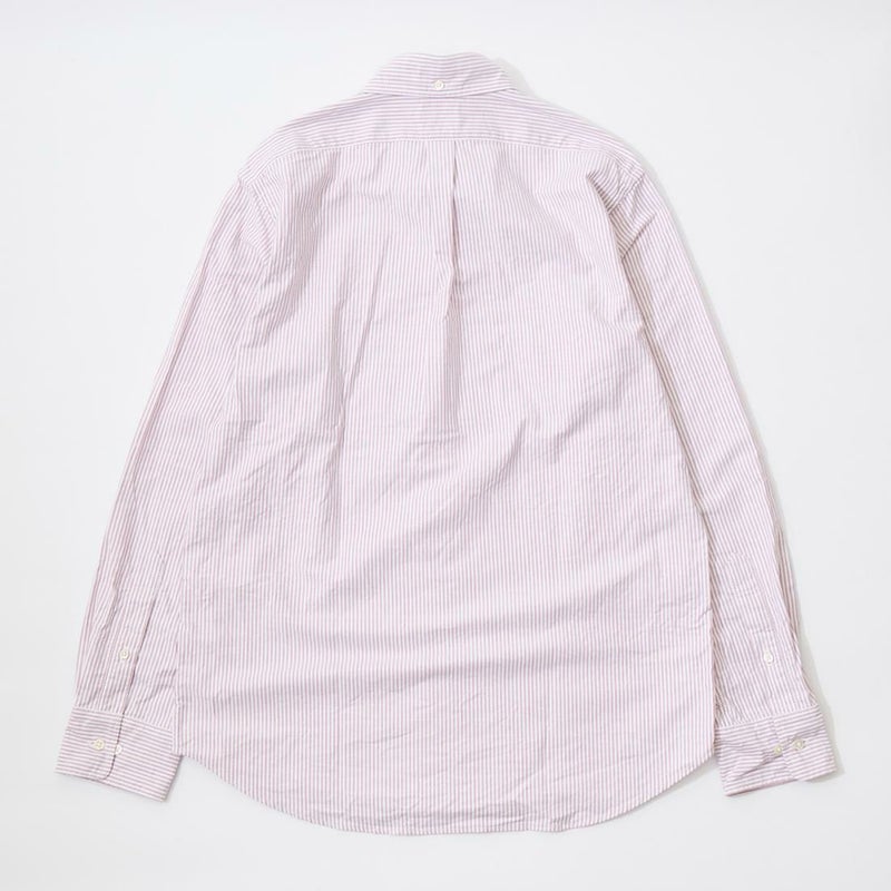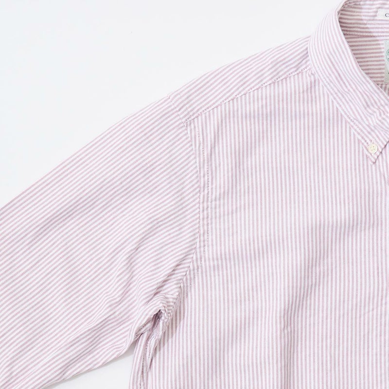 KEATON CHASE USA(キートンチェイスUSA)のL/S CLASSIC FIT FULLOPEN BD SHIRT PREMIUM OXFORD LONDON STRIPE。日本生産ラインのフルオープンの長袖ボタンダウンシャツ。。左胸にフラップポケットが配置。背面はボックスプリーツ仕様。襟の後ろにはチョークボタン付き。程よいゆとりのクラシックフィット。素材はコットンオックスフォードのキャンディーストライプ。