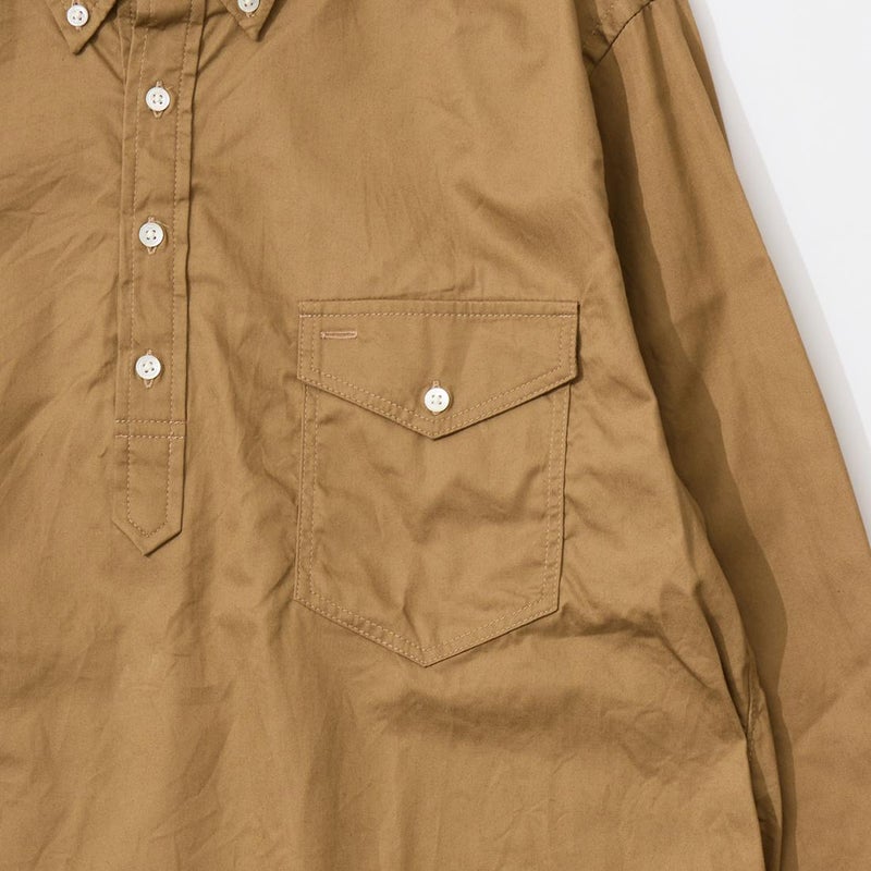KEATON CHASE USA (キートンチェイスUSA) L/S CLASSIC FIT PULLOVER BD SHIRT 30S COTTON DYED TWILL - TAN