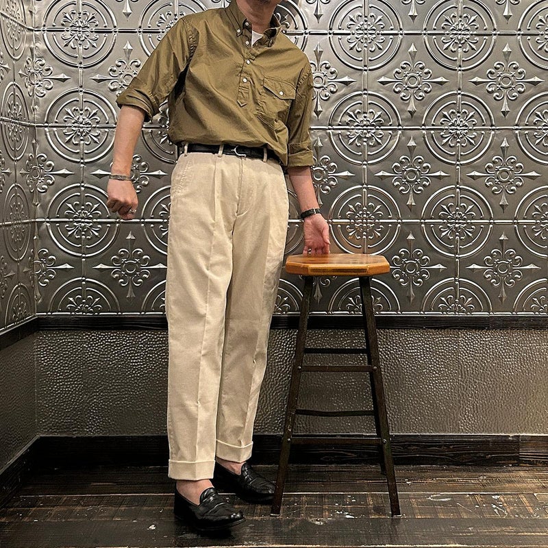 7. KEATON CHASE USA (キートンチェイスUSA) L/S CLASSIC FIT PULLOVER BD SHIRT 30S COTTON DYED TWILL - TAN