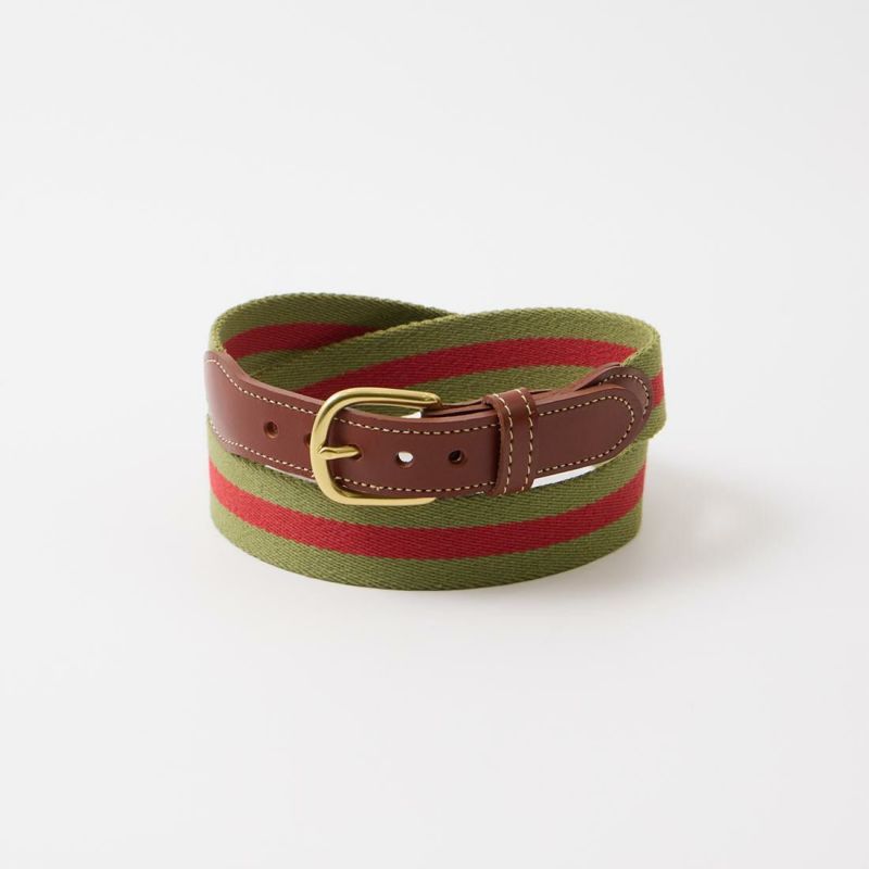 LEATHERMAN BELT (レザーマンベルト) 1.25 STRIPED COTTON SURCINGLE W/YELLOW STITCHED TABS BRASS HARNESS BUCKLE - NAVY_KHAKI