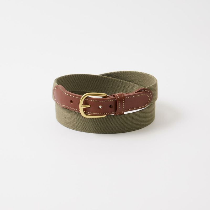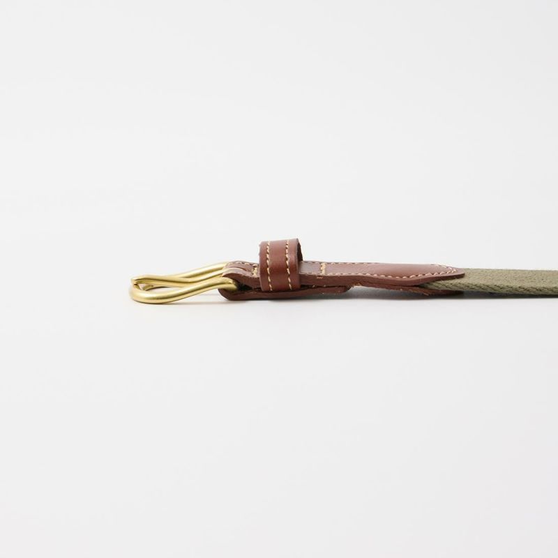 LEATHERMAN BELT (レザーマンベルト) 1.25 SOLID COTTON SURCINGLE W/YELLOW STITCHED TABS BRASS HARNESS BUCKLE - OLIVE