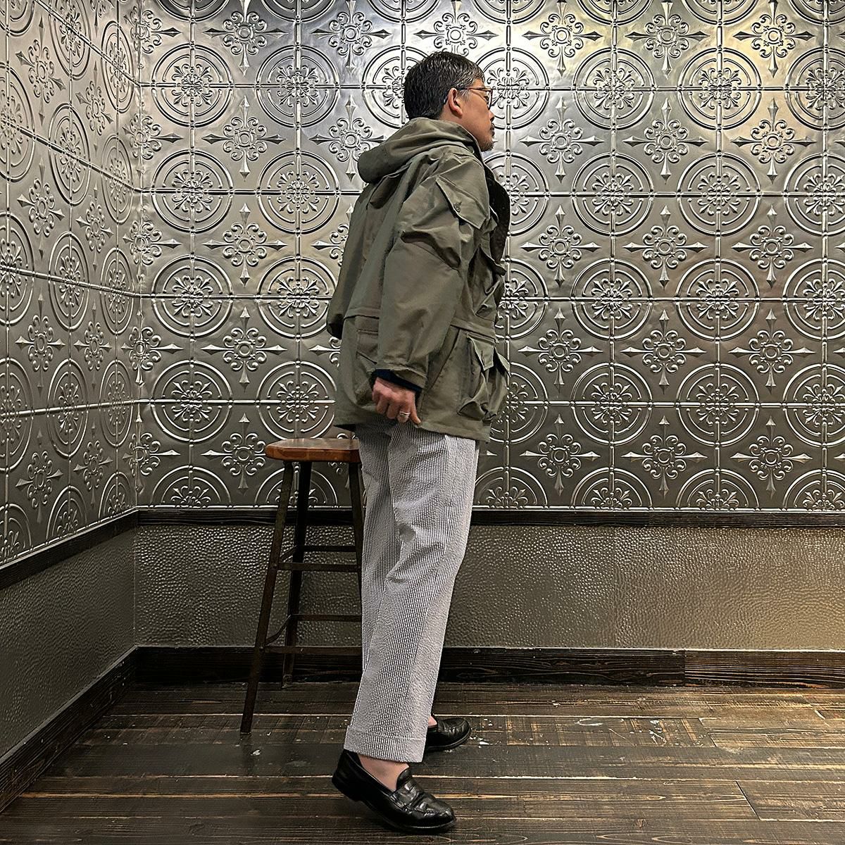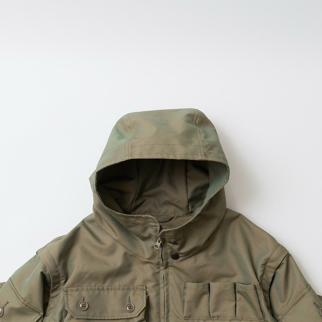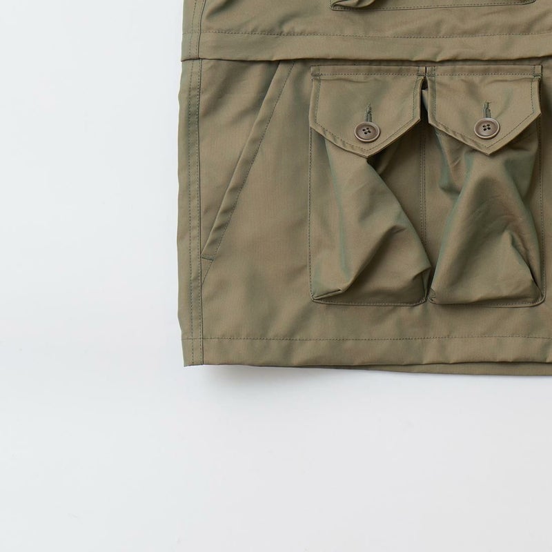 MODMNT(モドメント)のPHOTOGRAPHER JKT。フロントやバックに配置された多数のポケットが特徴的なフォトグラファージャケット。1980年代、中国を旅したアンディ・ウォーホルが着用していたジャケットがデザインソース。前立てはジップフロント。着脱可能なスリーブや着丈の変更が可能。袖を外してベストとしての着用や用途やスタイルに応じて着丈の調整が可能。素材はVENTONE(ベントーネ)を採用。ベントーネはベンタイルの製造技術を応用し、コットンと合繊フィラメントを交織・融合。撥水加工により耐久撥水性を備え、同時に透湿性にも配慮されている機能性の高い素材。