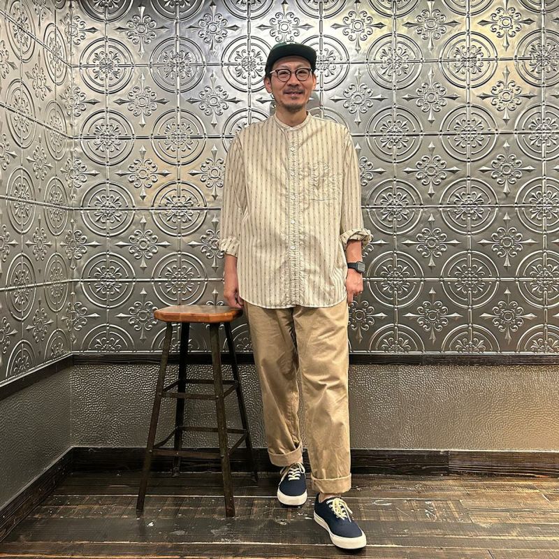 バンドカラーシャツ MV ストライプ シーチング 日本製