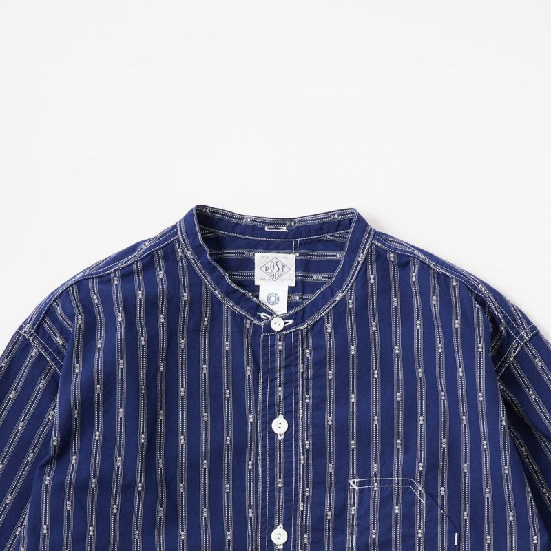 POST OVERALLS (ポストオーバーオールズ) BAND COLLAR SHIRT MV STRIPE SHIRTING - NATURAL
