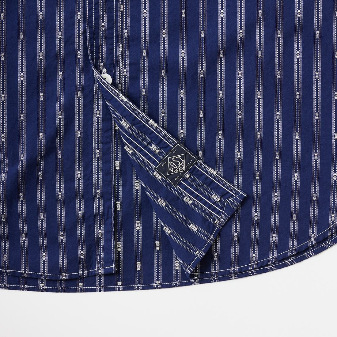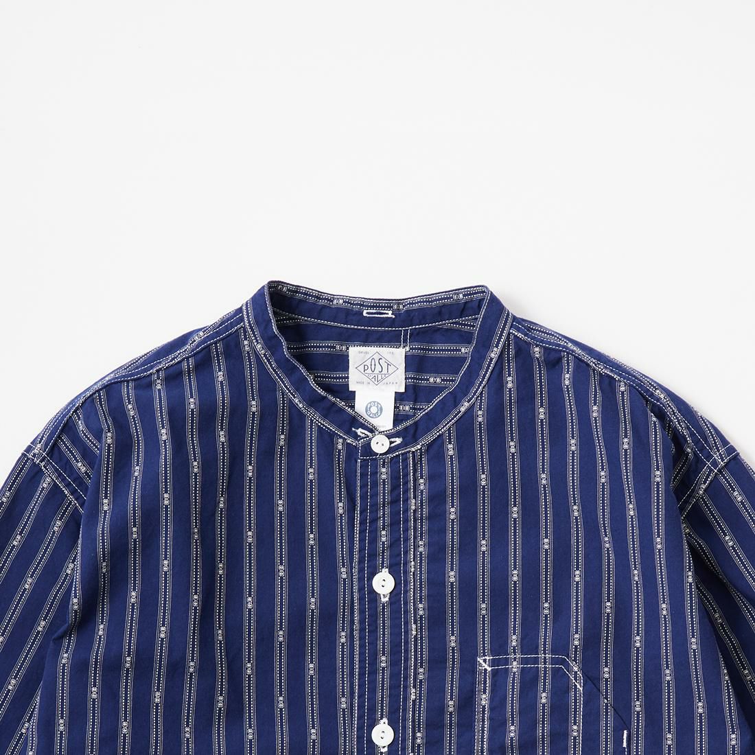 【SALE】POST OVERALLS (ポストオーバーオールズ) BAND COLLAR SHIRT MV STRIPE SHIRTING - NATURAL