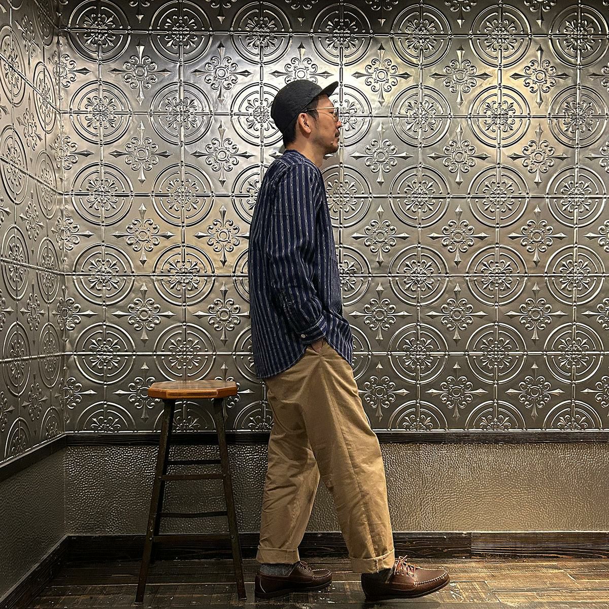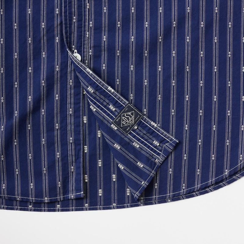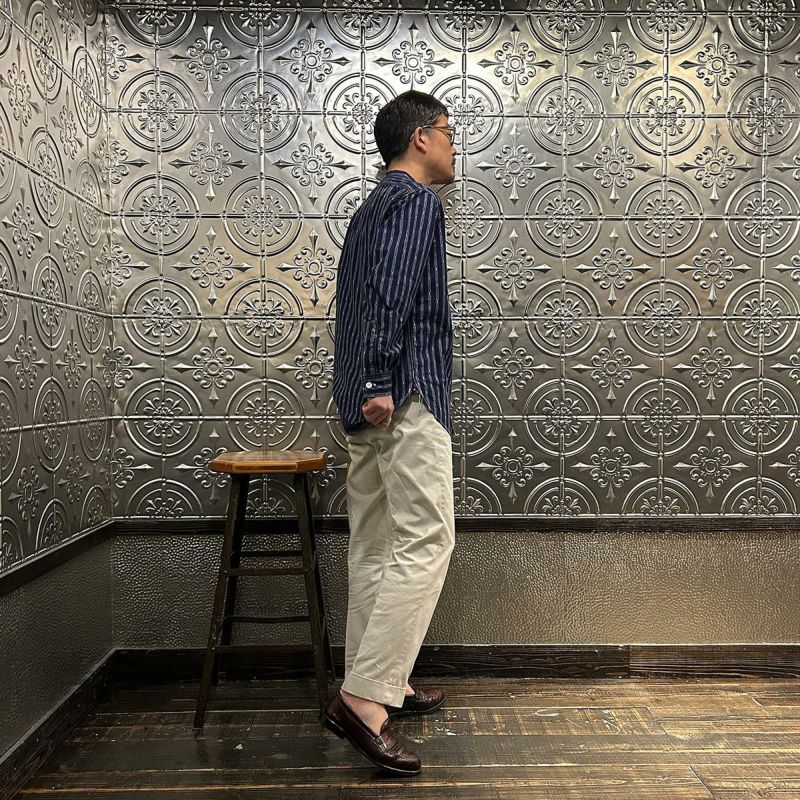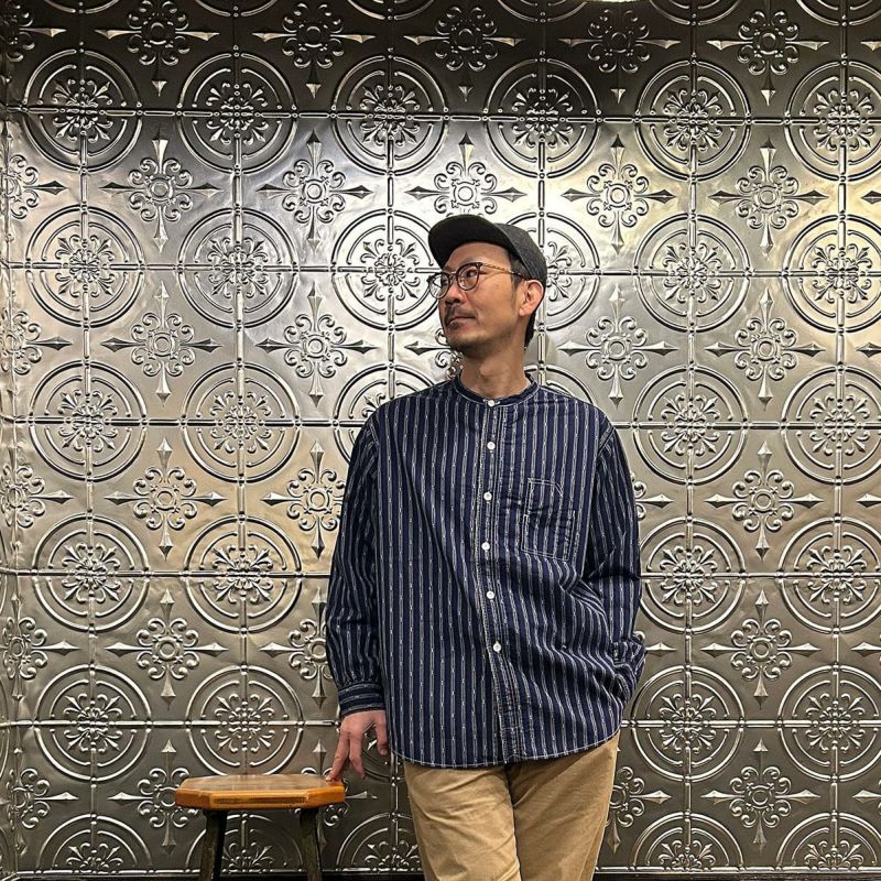 バンドカラーシャツ MV ストライプ シーチング 日本製