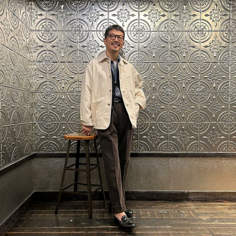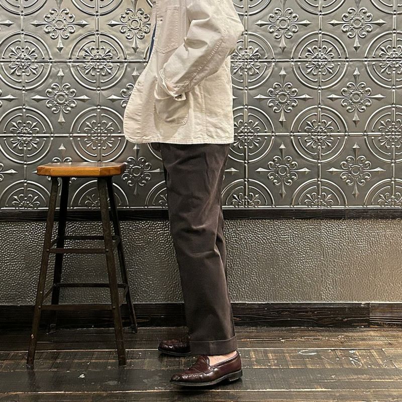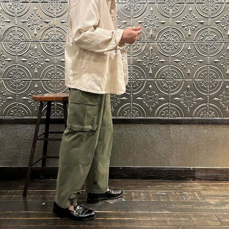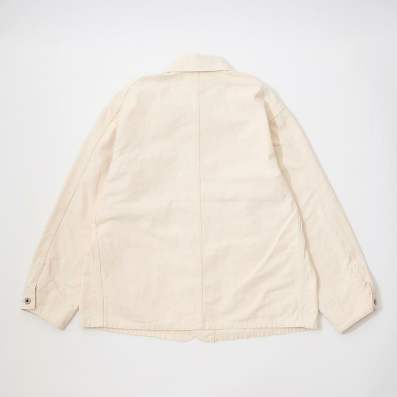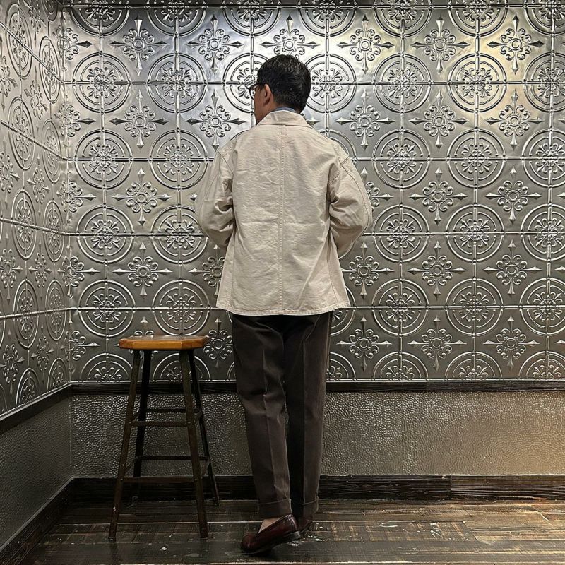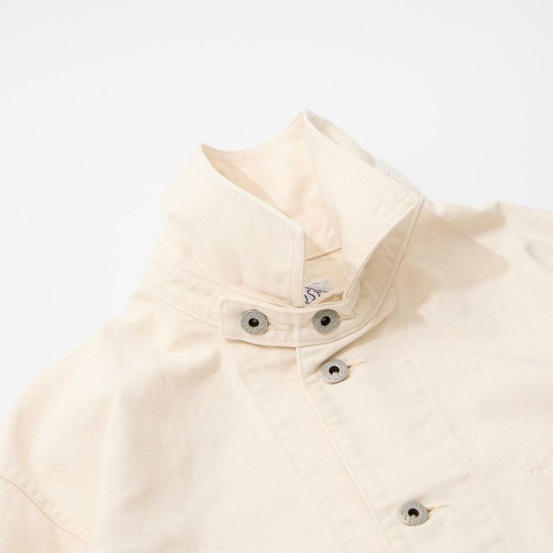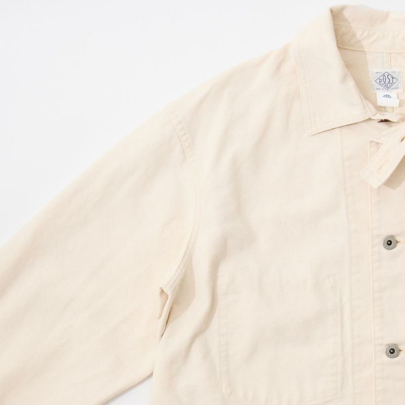 POST OVERALLS(ポストオーバーオールズ)のPOST 46 PIGMENT DYED CANVAS。1930年代の第二次大戦下の簡略化されたカバーオールがデザインソース。首元にはチンストラップ。フロントはシンプルな3つのパッチポケット。右胸には内ポケットを装備。ドーナツボタンを採用。素材はウォッシュ加工が施されたコットンキャンバス。柔らかく着用感も良い仕上がり。