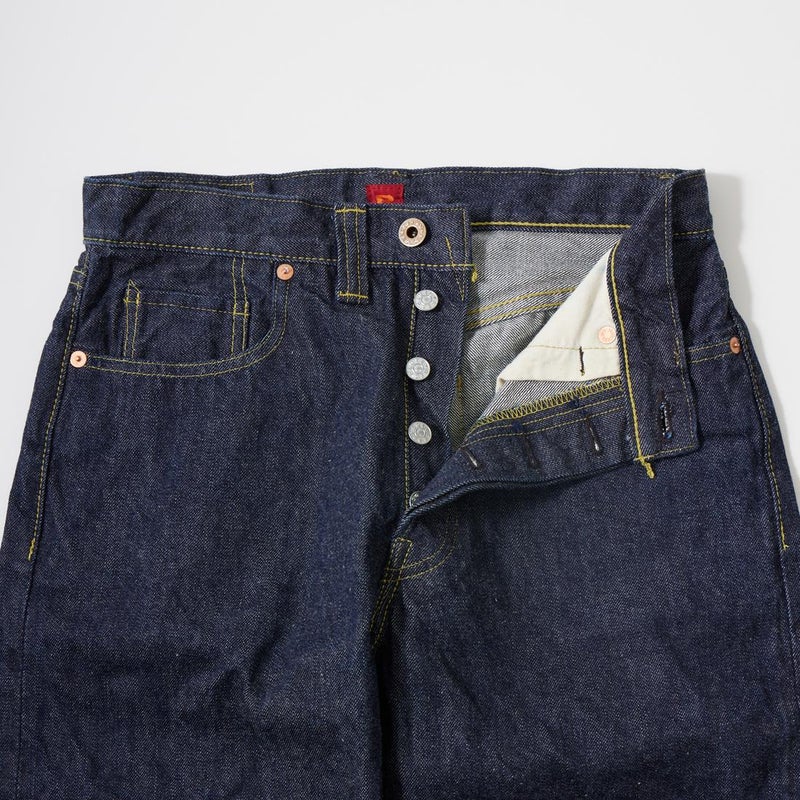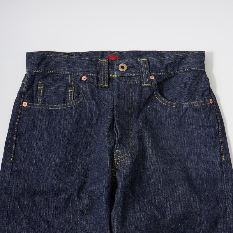 「RESOLUTE(リゾルト)」が満を持して2023年4月にリリースした新型「714」。ヴィンテージの通称「大戦モデル」をベースにした一本。711と同じ13.5オンスの中国地方備後地区のデニムを使用。月桂樹が刻印されたドーナツ型トップボタン、リベットなしのコインポケット、太めのベルトループなど大戦モデル特融のディテールを踏襲。従来のリゾルトの他モデルに比べて股上を深めに設定。腰回りにゆとりのあるヒップを包み込むようなシルエットが特徴。